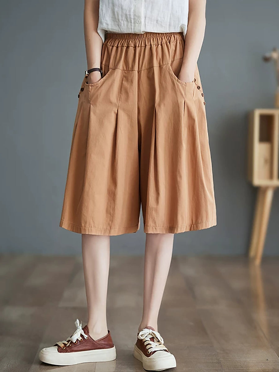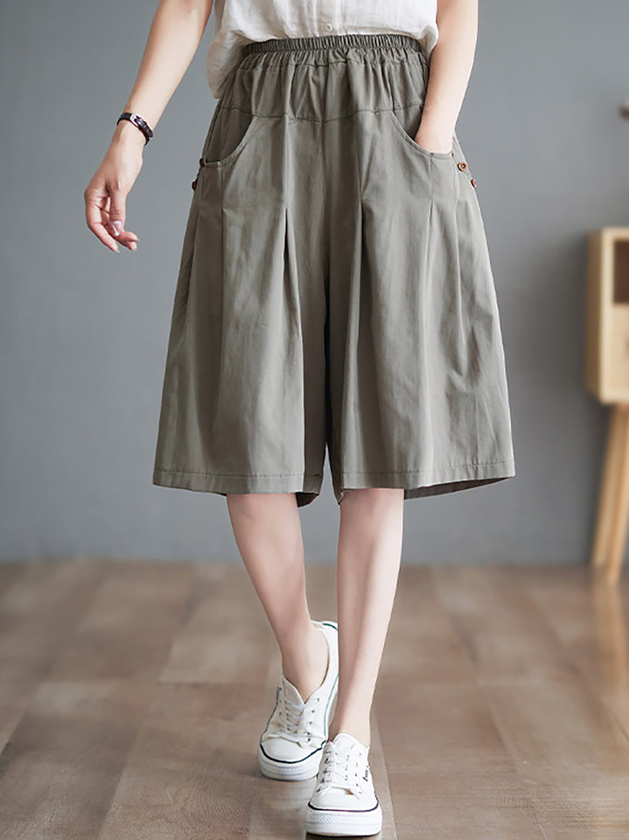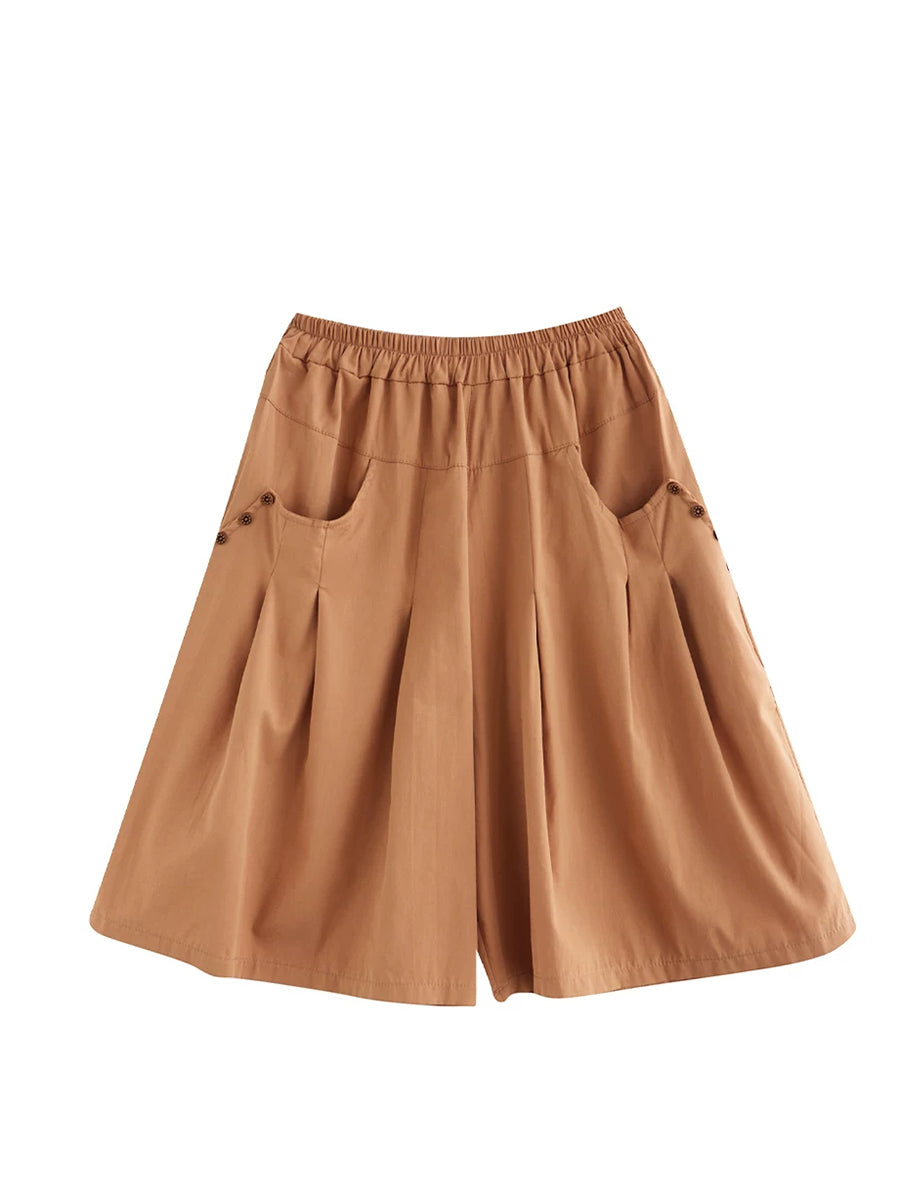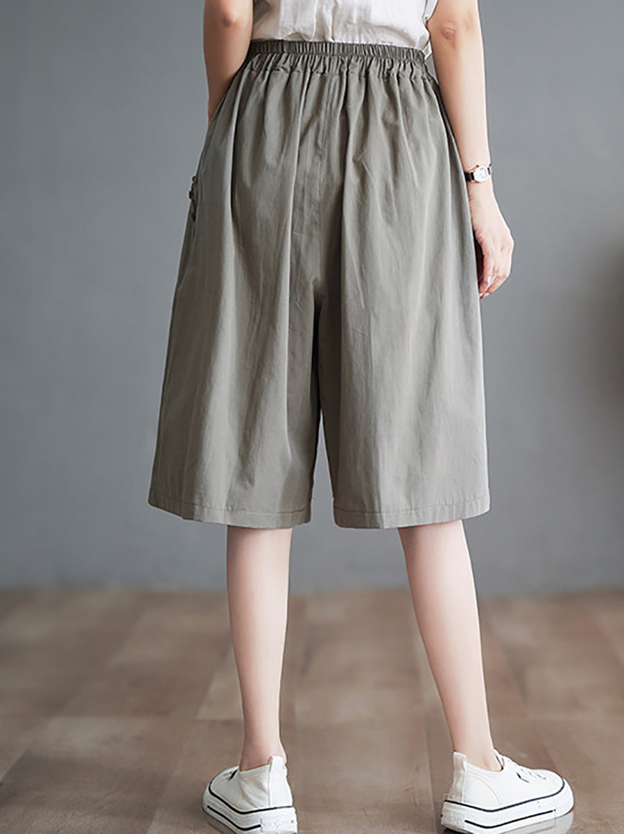 بنطلون نسائي صيفي متوسط الطول واسع الساقين بلون موحد