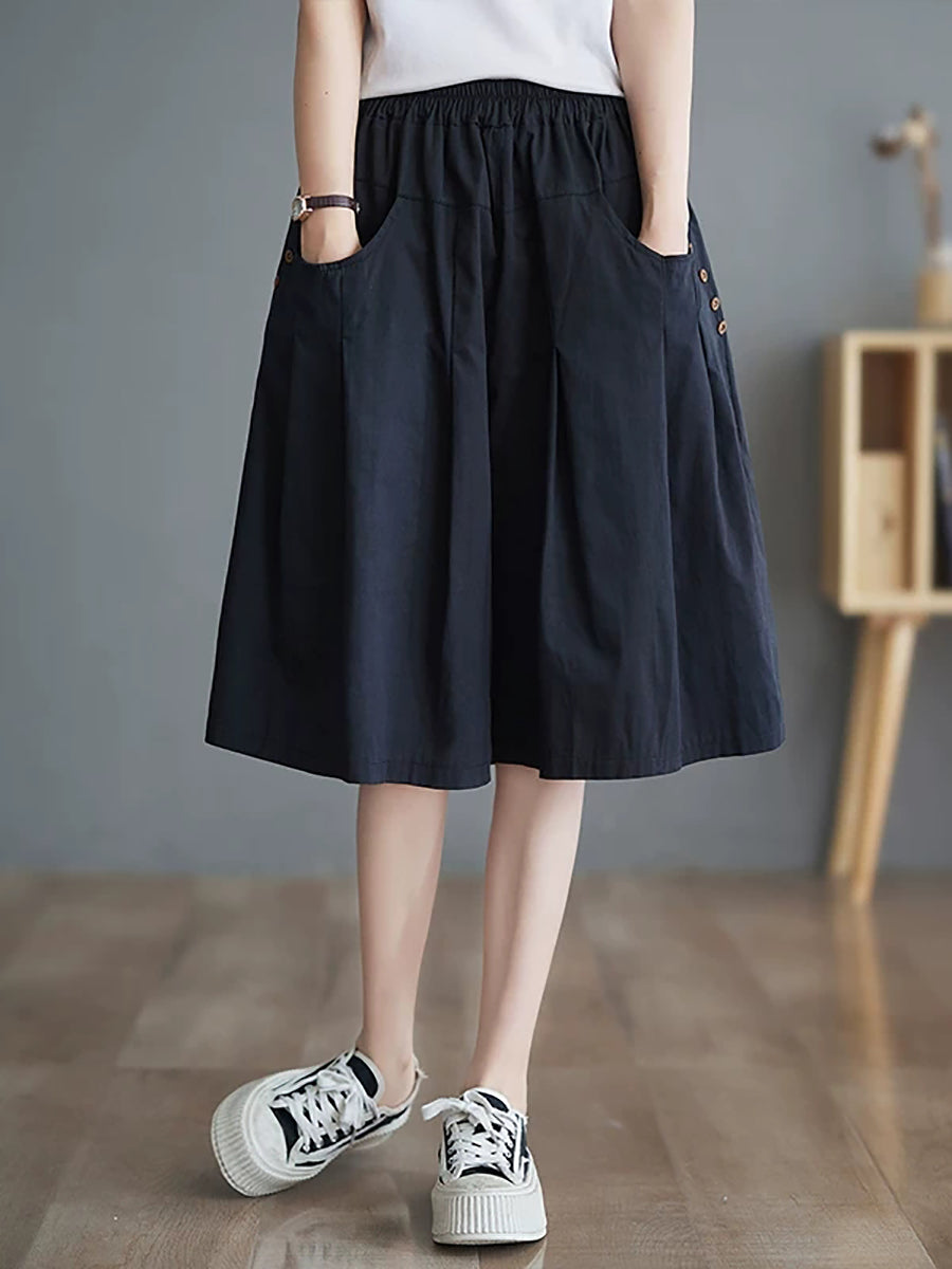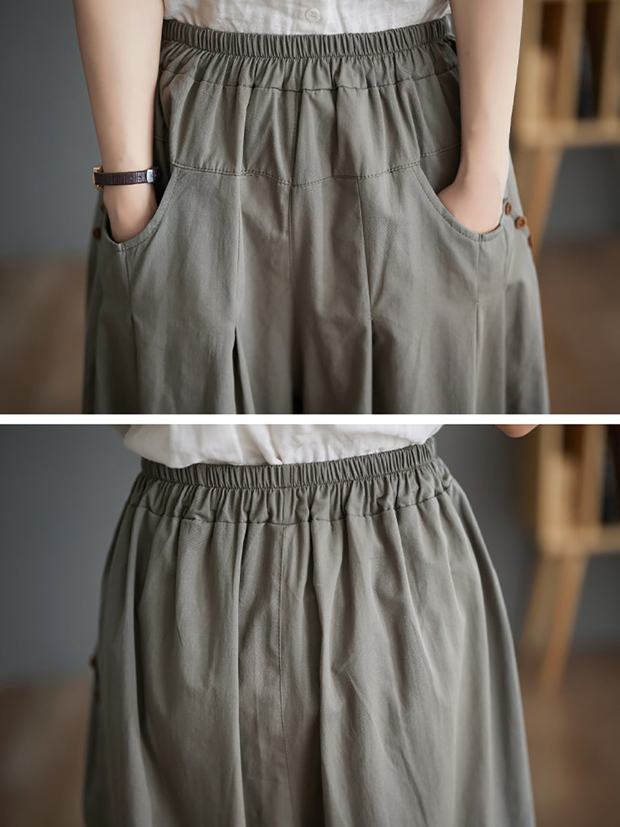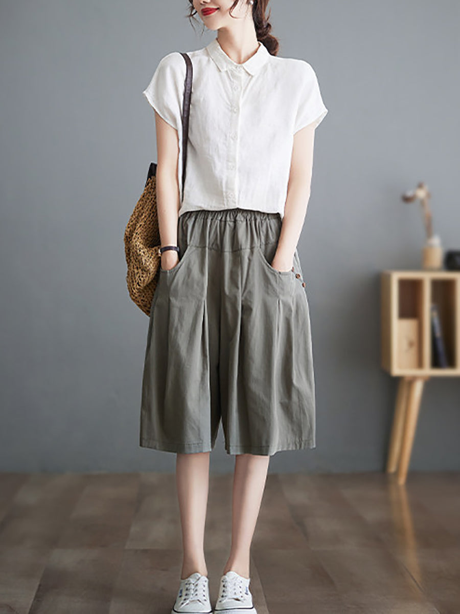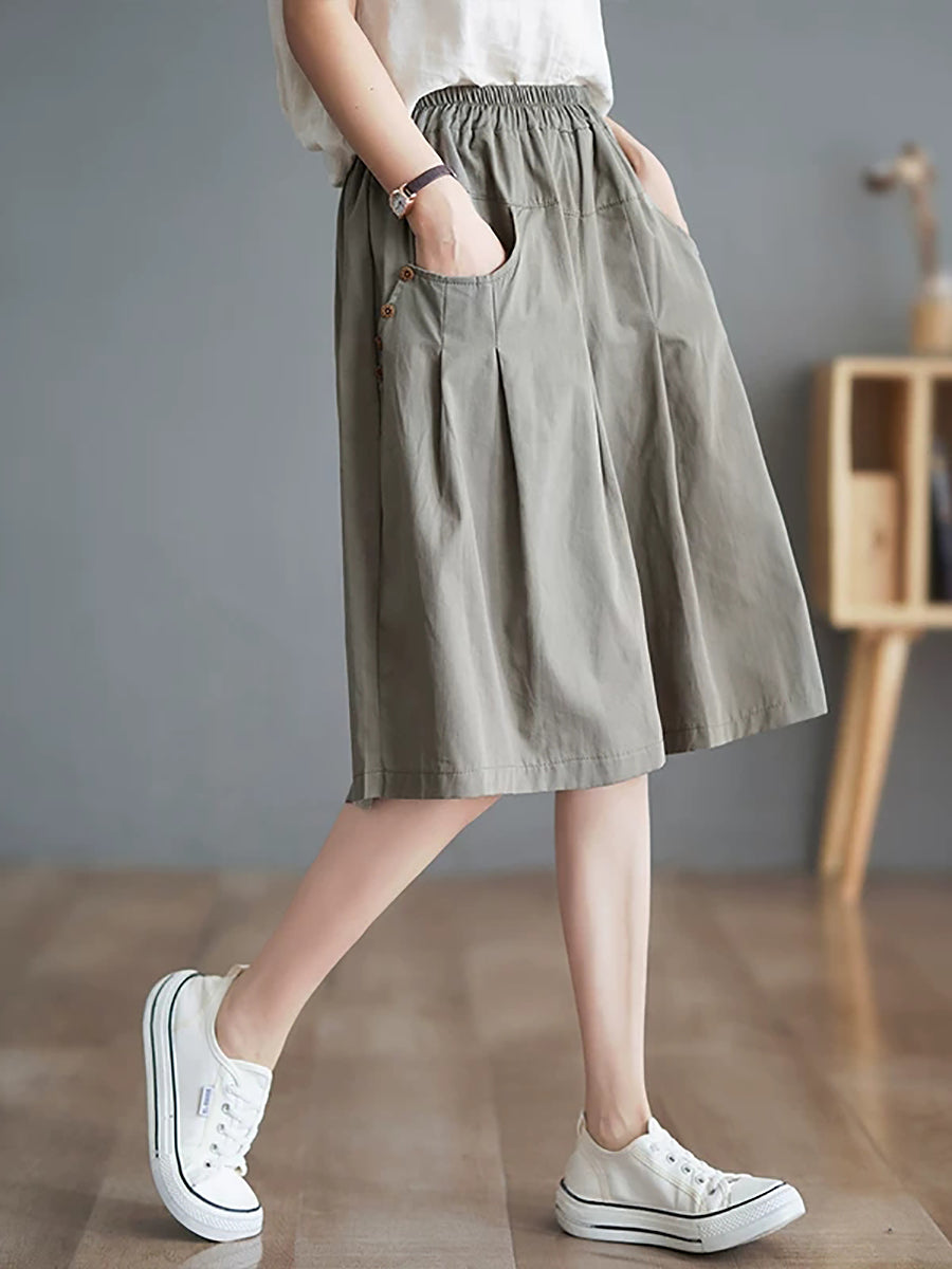بنطلون نسائي صيفي متوسط الطول واسع الساقين بلون موحد