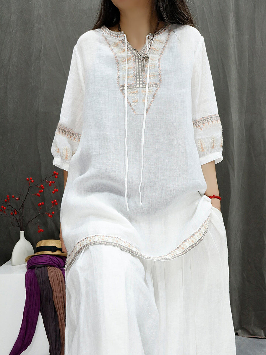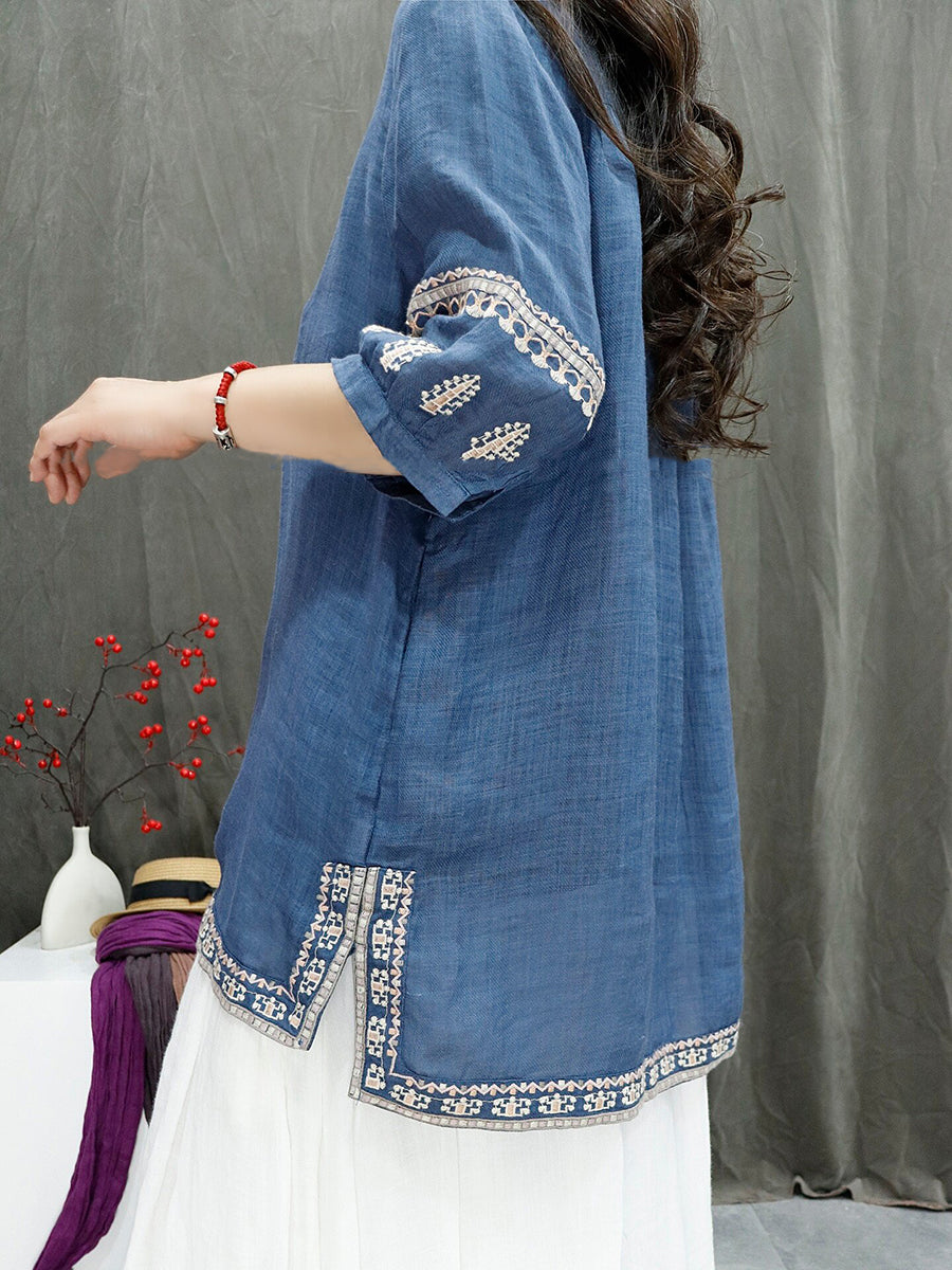 بلوزة نسائية صيفية مطرزة بنمط ريترو مصنوعة من قماش الرامي بنسبة 100%