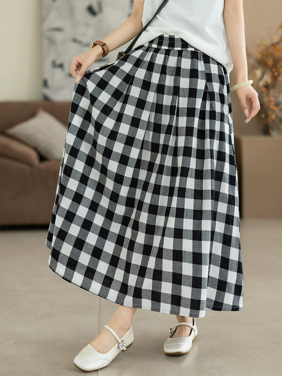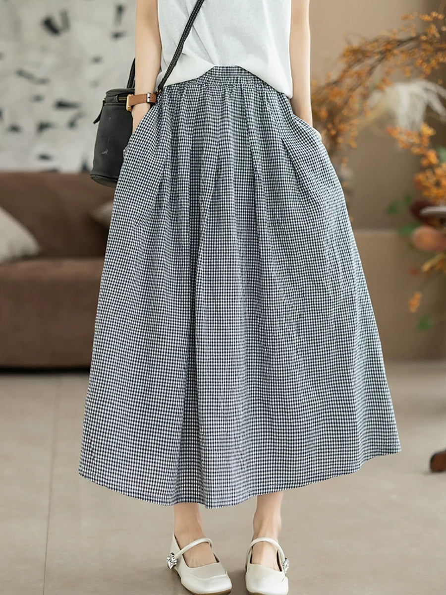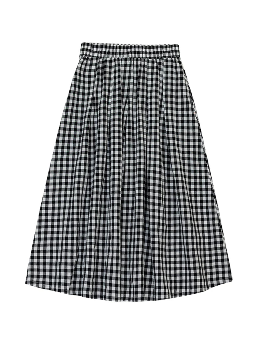 تنورة نسائية صيفية بنقشة مربعات كلاسيكية على شكل حرف A مصنوعة من القطن بنسبة 100%