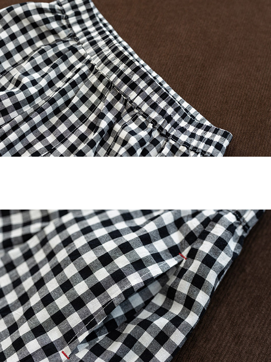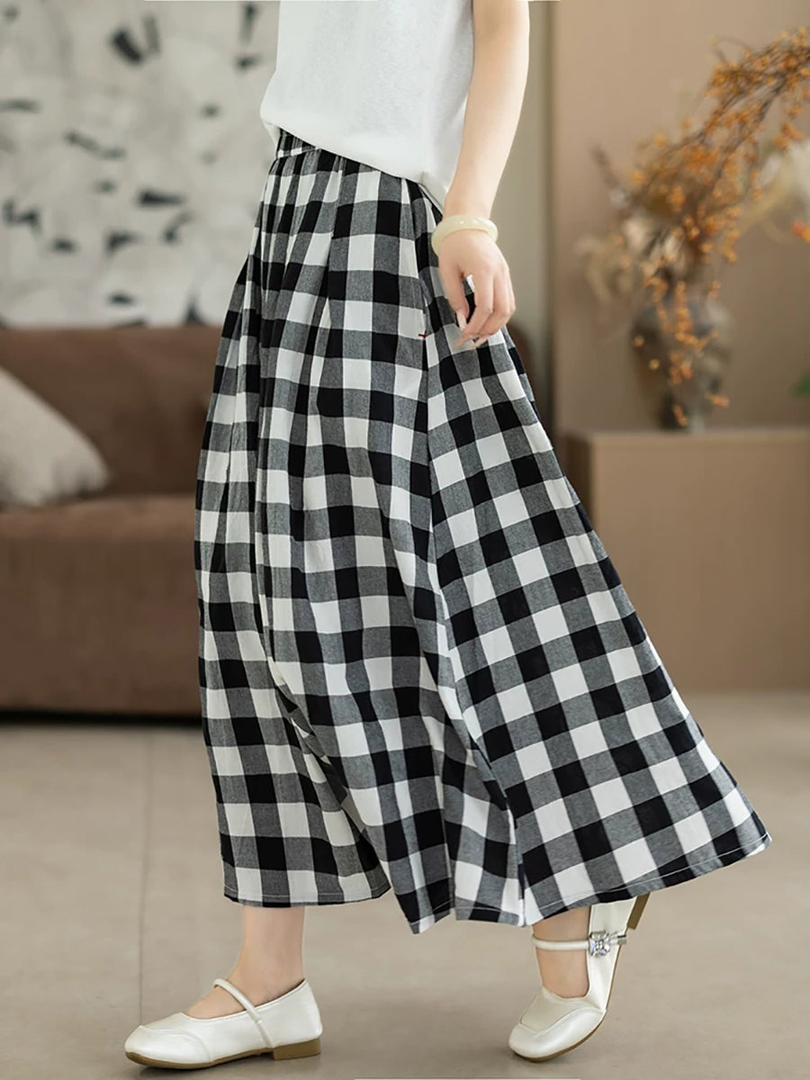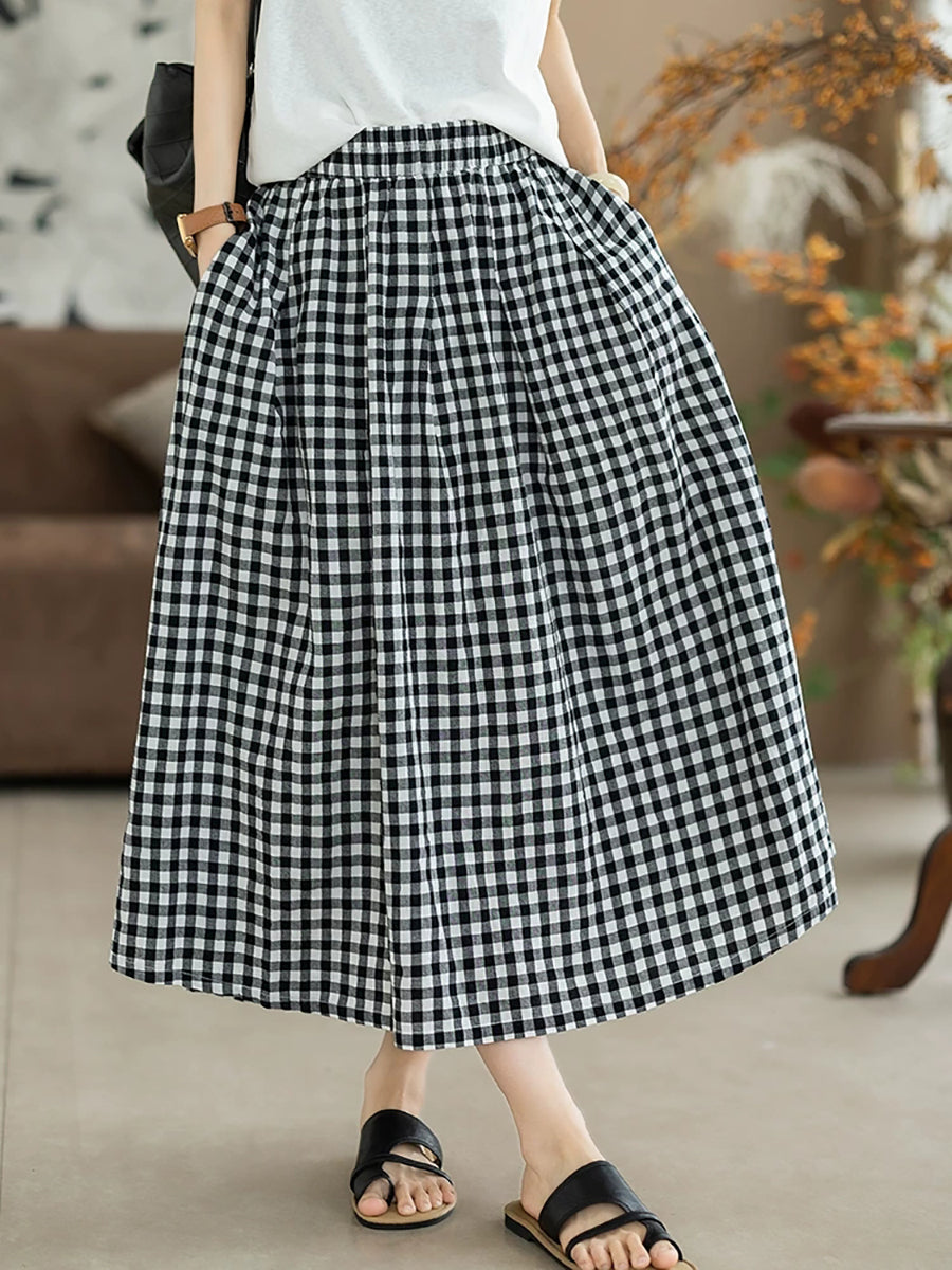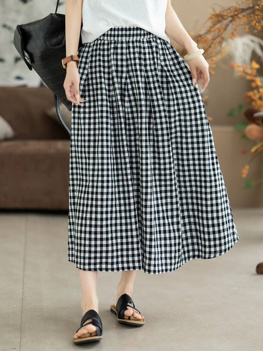 تنورة نسائية صيفية بنقشة مربعات كلاسيكية على شكل حرف A مصنوعة من القطن بنسبة 100%