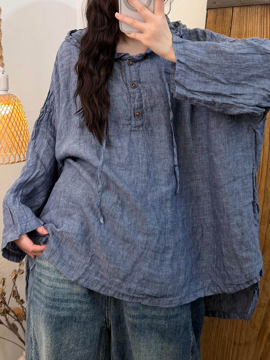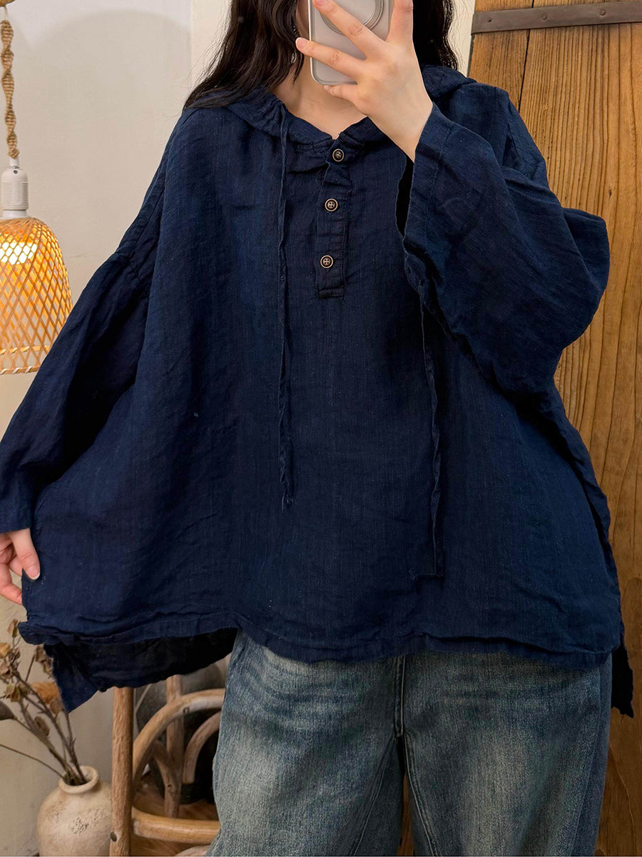بلوزة صيفية نسائية بغطاء رأس، بتصميم كلاسيكي، بلون موحد