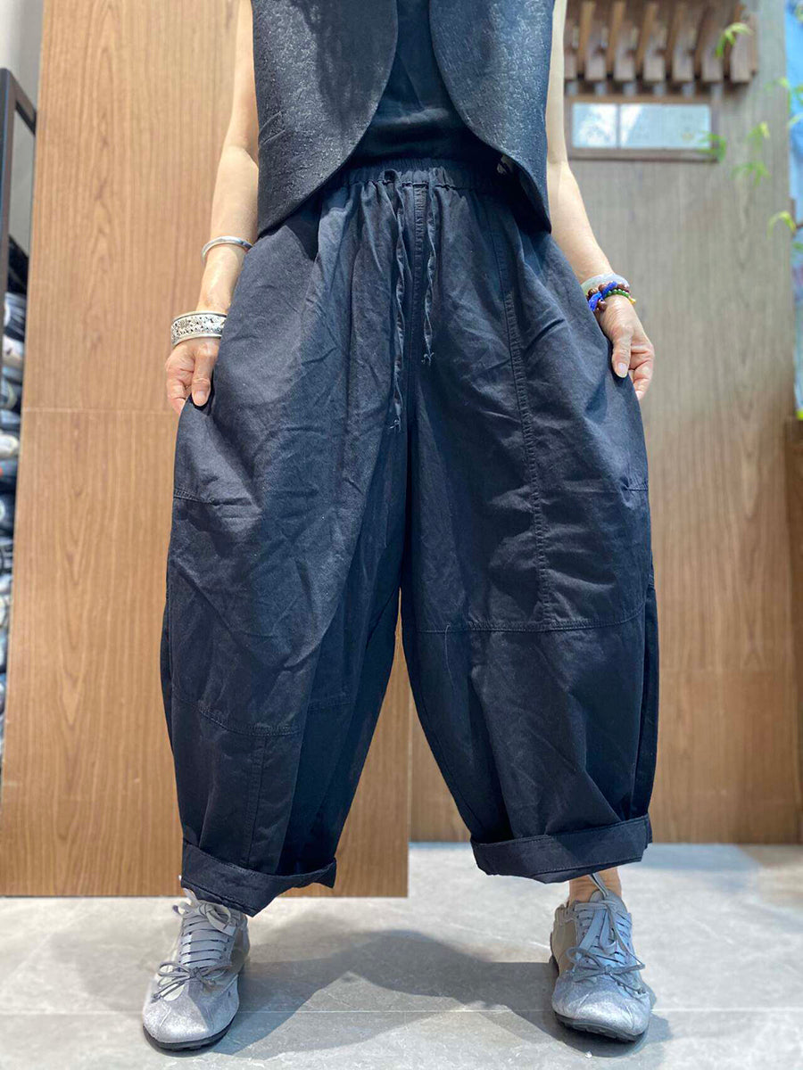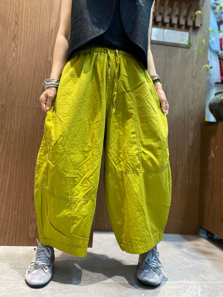 بنطلون نسائي صيفي واسع الساقين بلون سادة بتصميم كلاسيكي