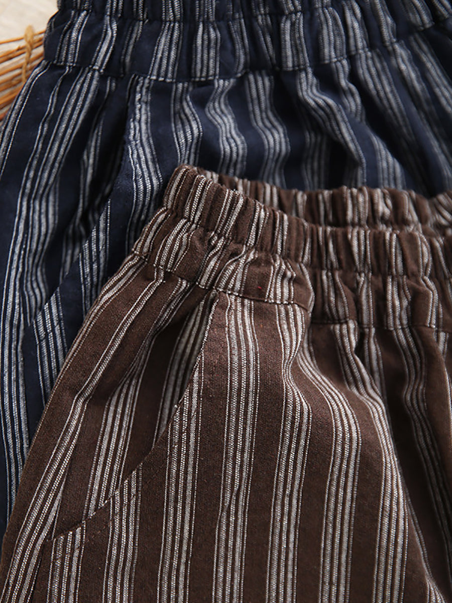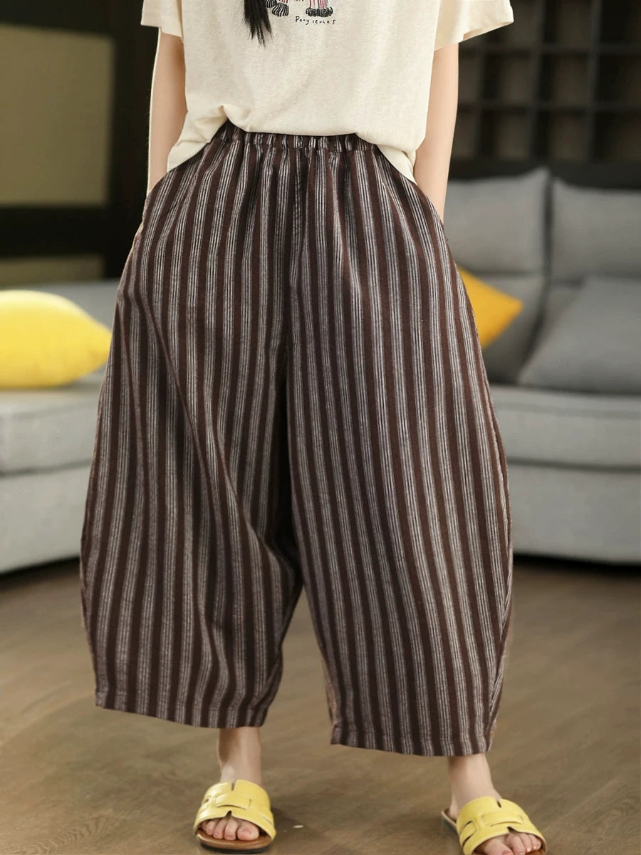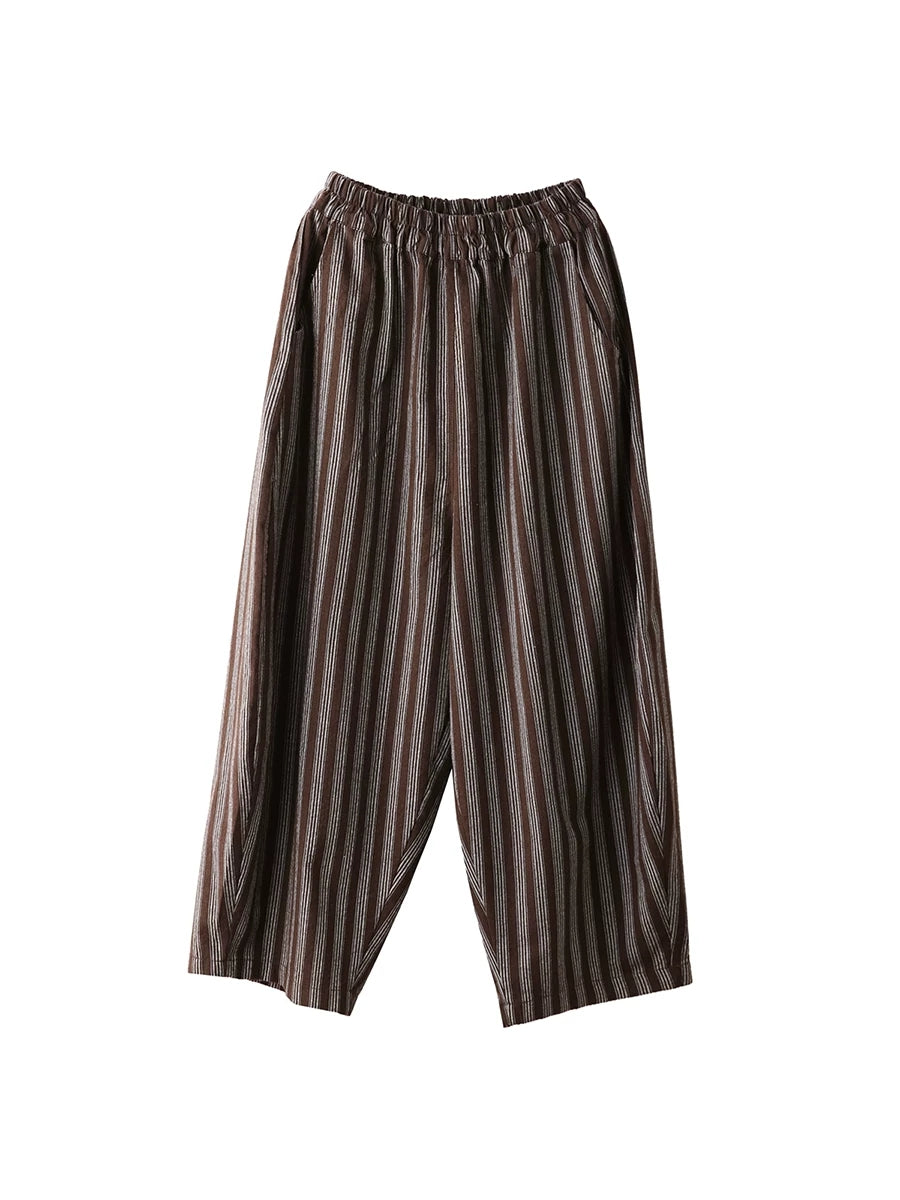 بنطلون حريمي صيفي نسائي مخطط بنمط ريترو مصنوع من الكتان بنسبة 100%