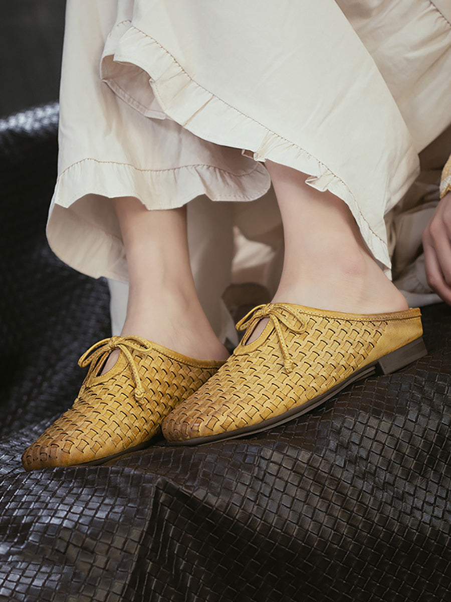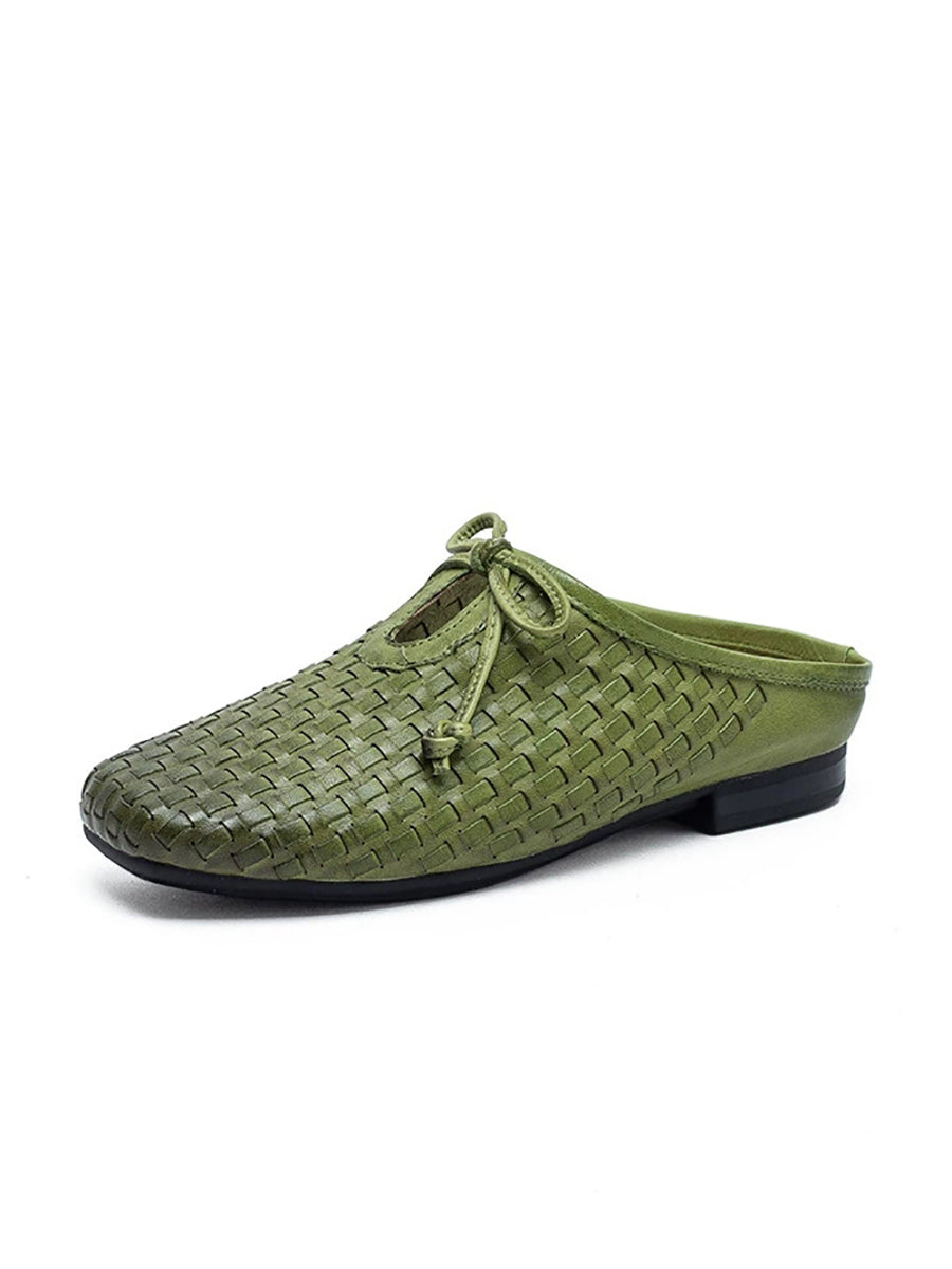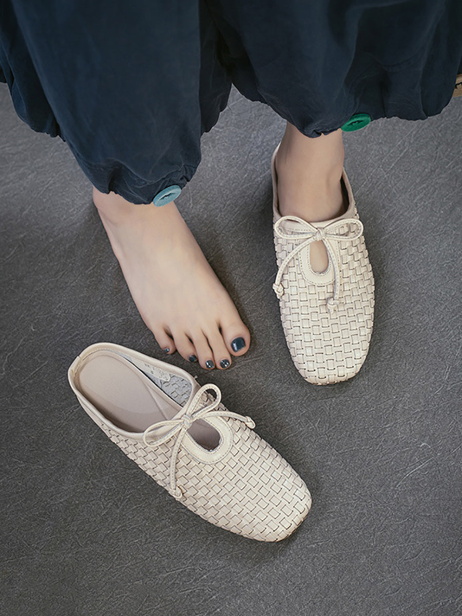 شباشب نسائية صيفية مسطحة من الجلد الناعم المنسوج