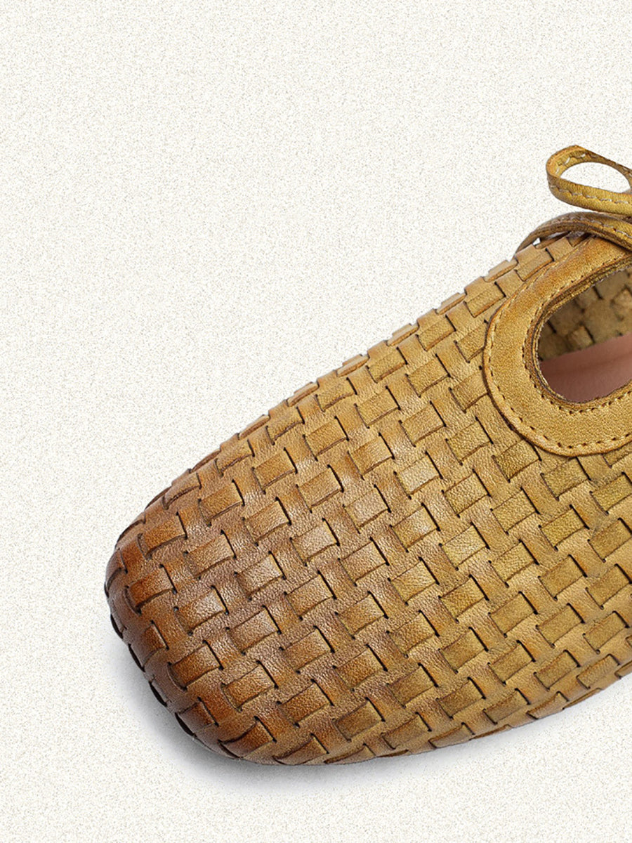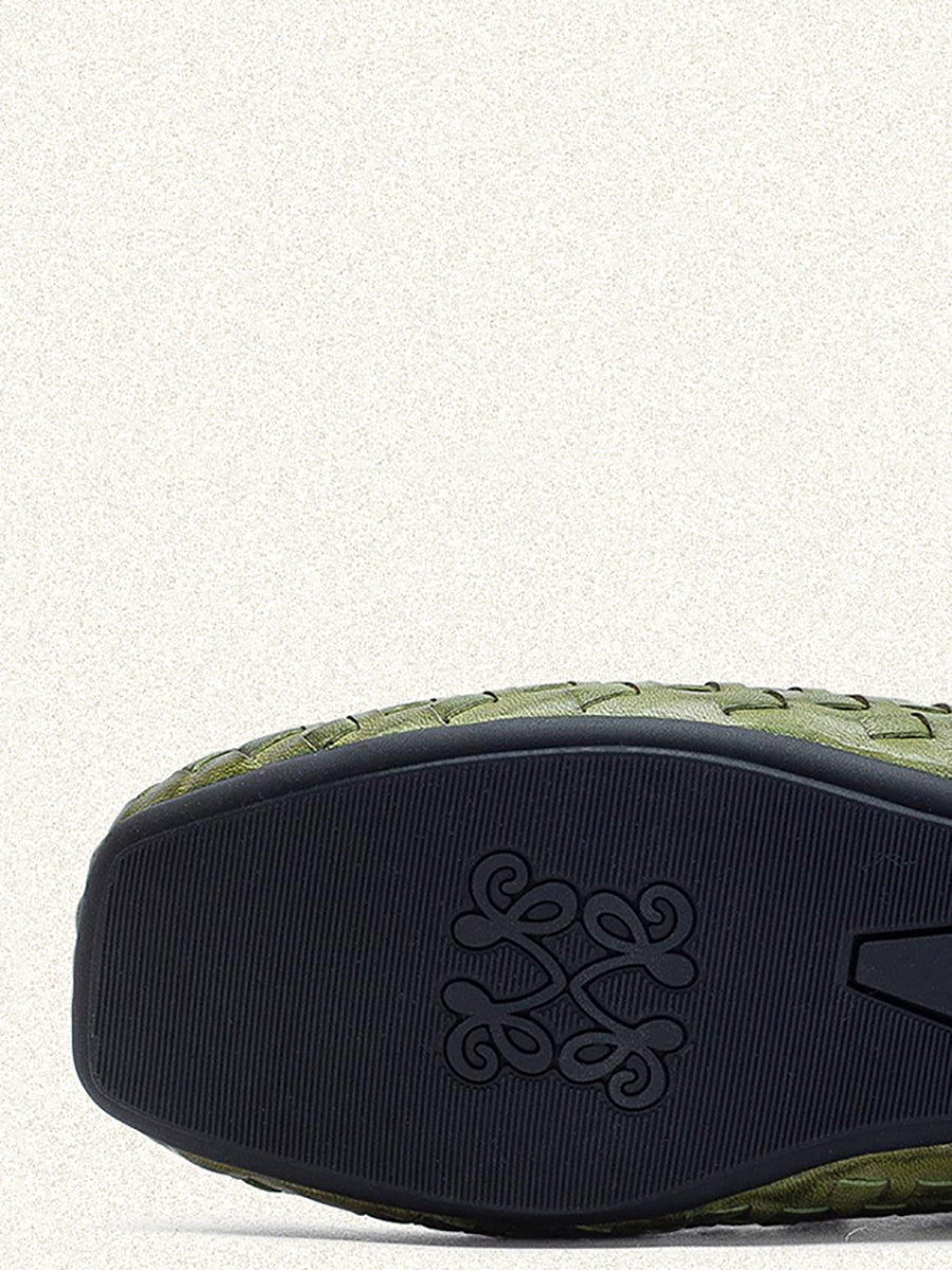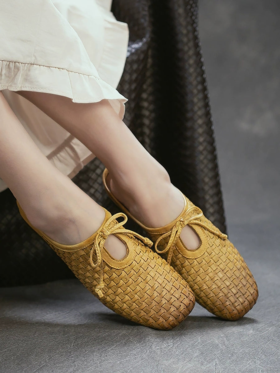 شباشب نسائية صيفية مسطحة من الجلد الناعم المنسوج