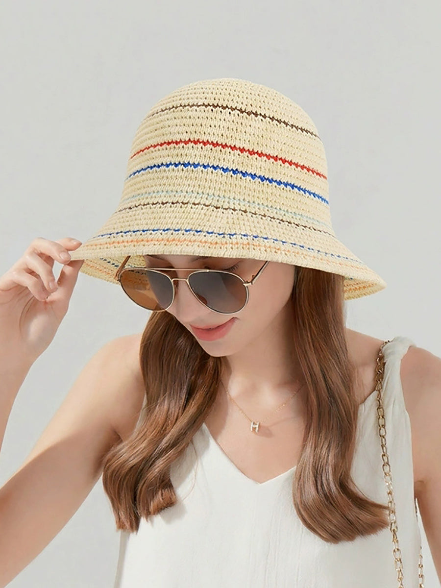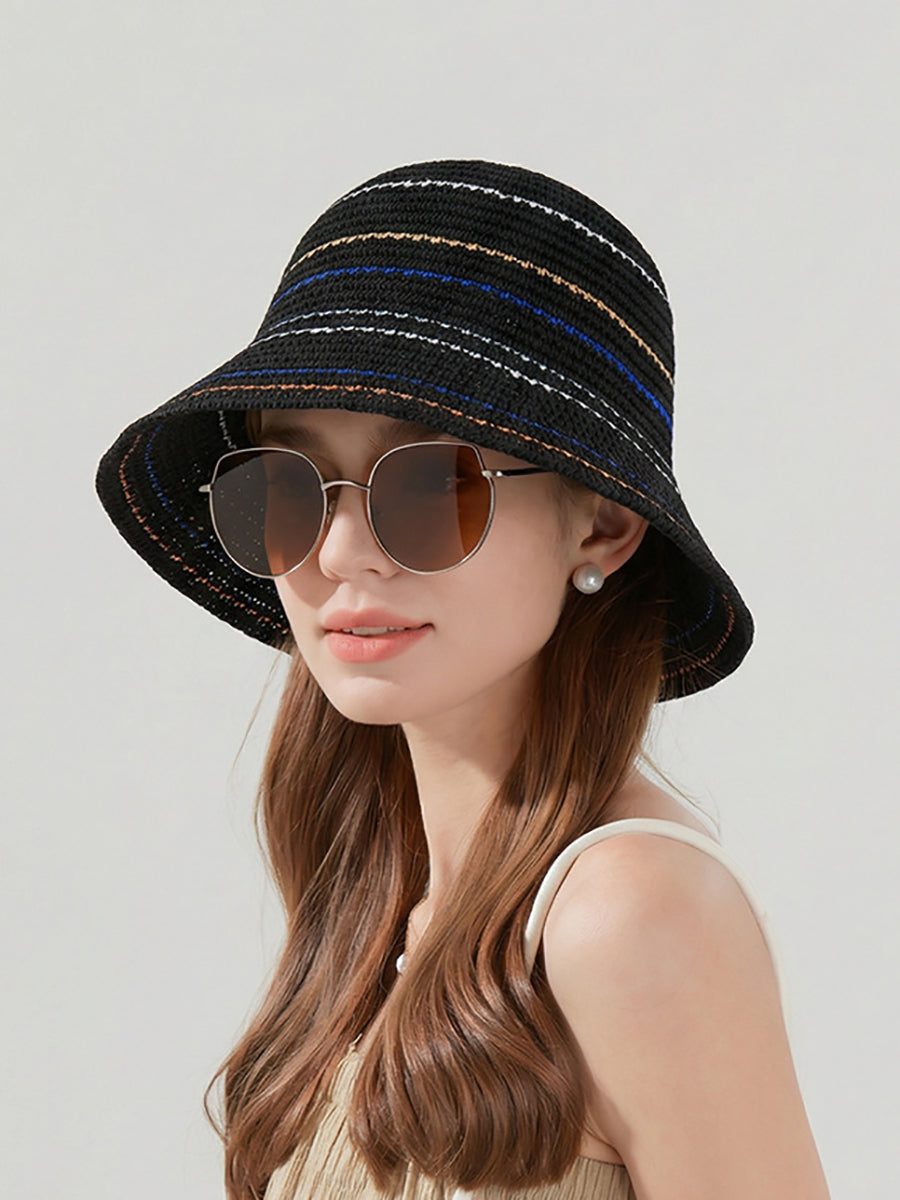 قبعة دلو صيفية مخططة للنساء مقاومة للشمس