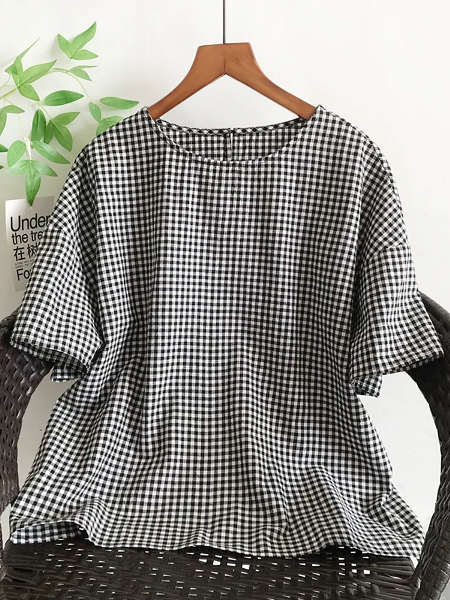 بلوزة نسائية صيفية متعددة الاستخدامات بياقة دائرية بنمط شبكي