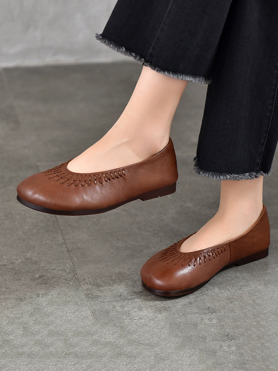 أحذية نسائية صيفية كلاسيكية مسطحة من الجلد الطبيعي