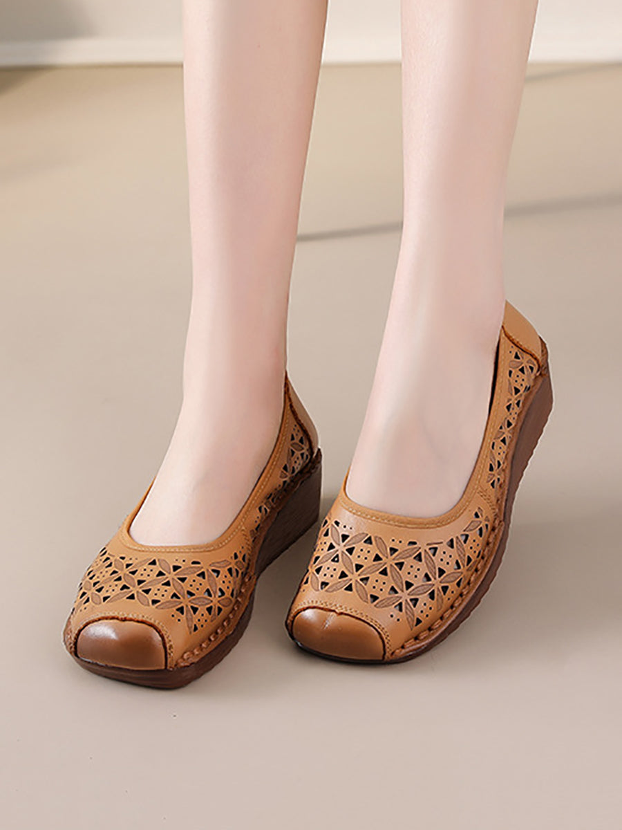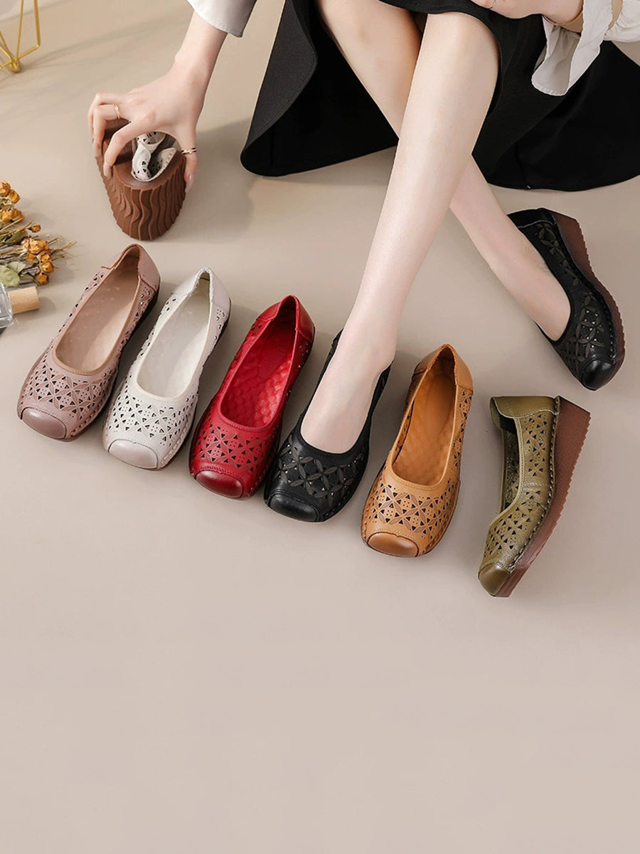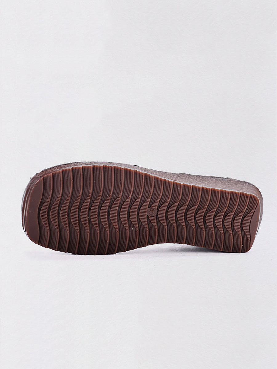 أحذية نسائية صيفية كلاسيكية من الجلد الطبيعي ذو نعل سميك