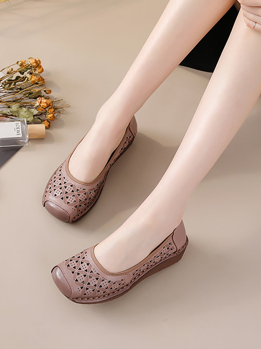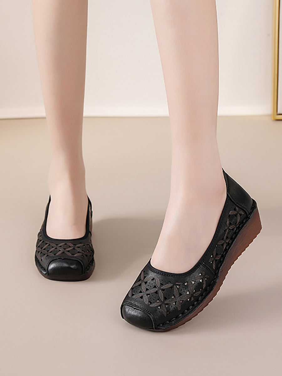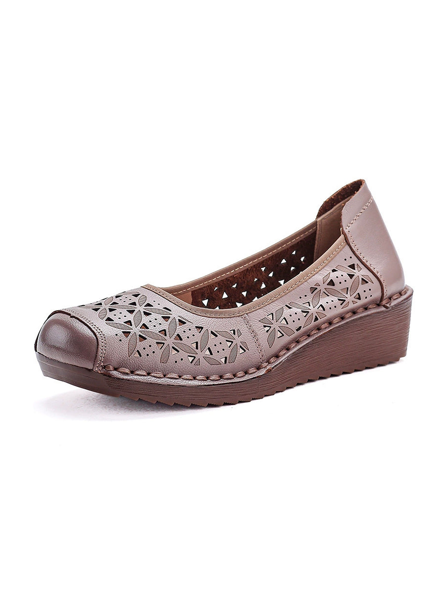 أحذية نسائية صيفية كلاسيكية من الجلد الطبيعي ذو نعل سميك