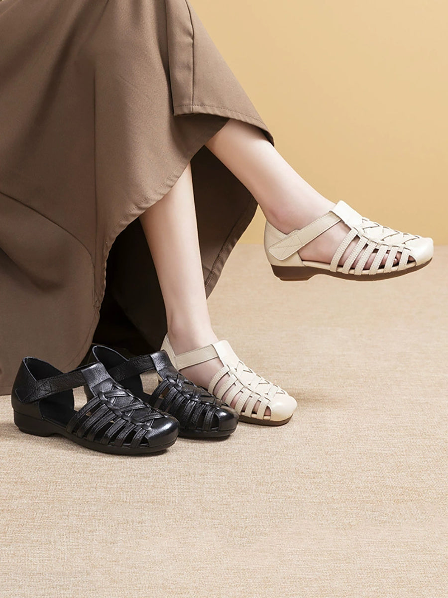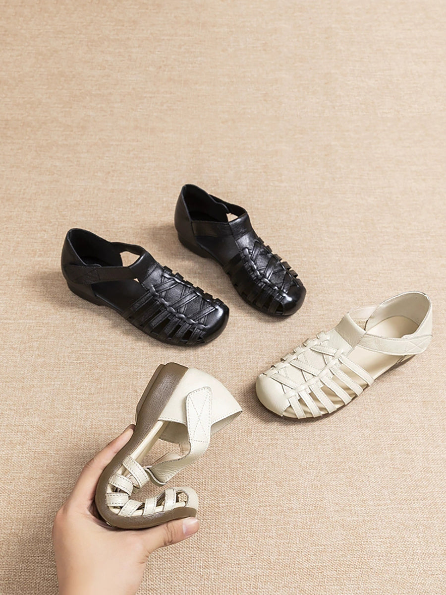 صنادل نسائية صيفية عتيقة من الجلد الطبيعي المنسوج