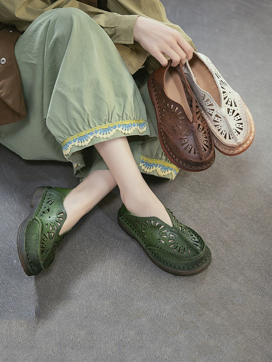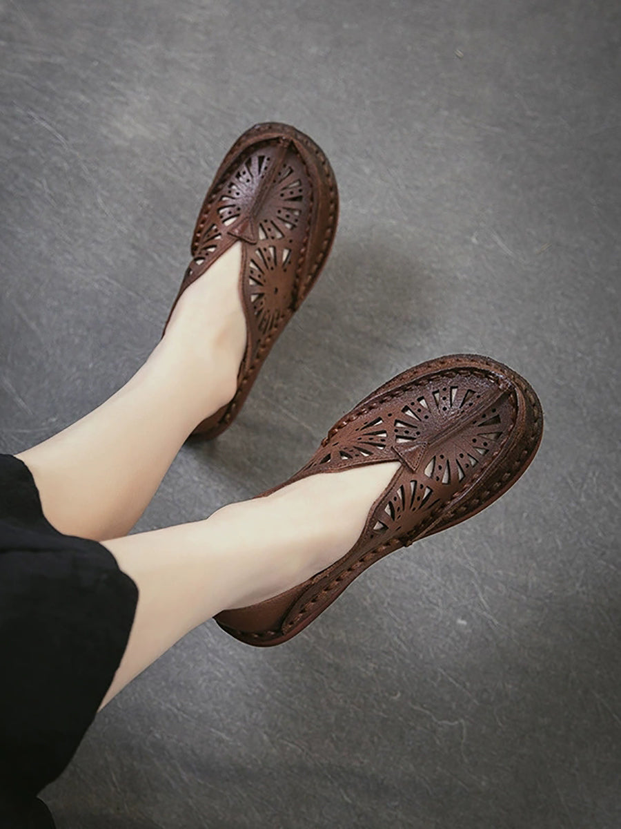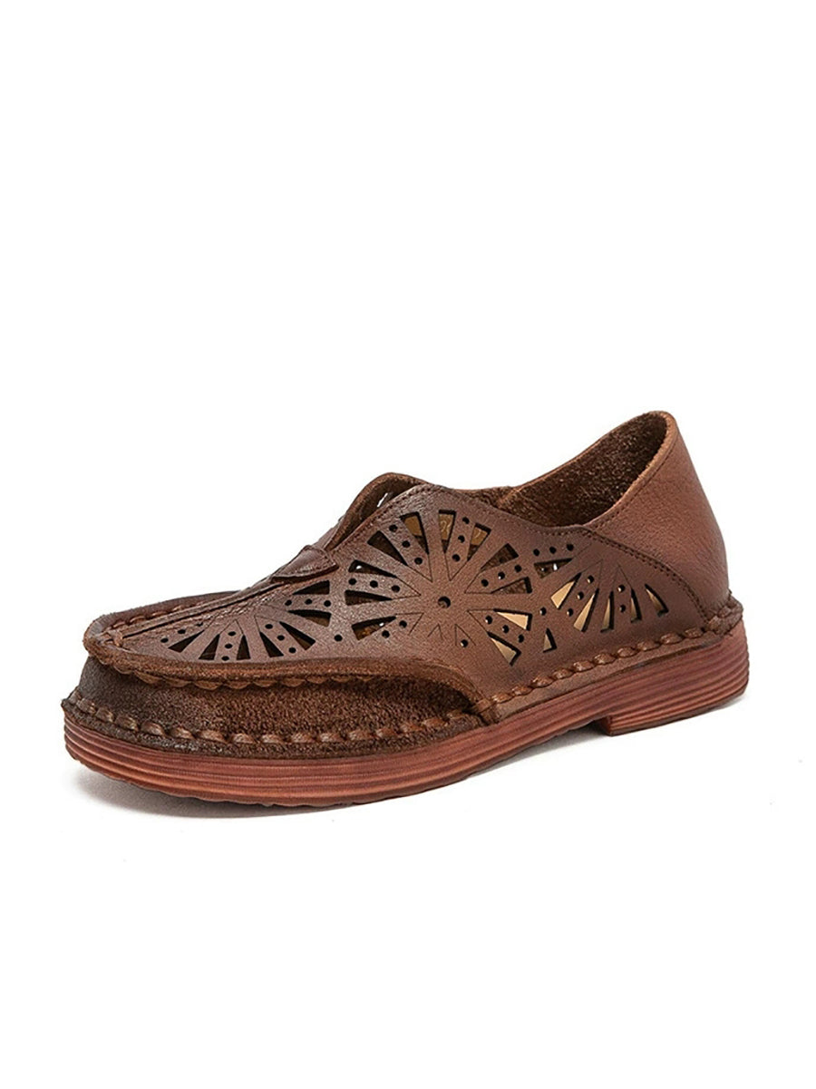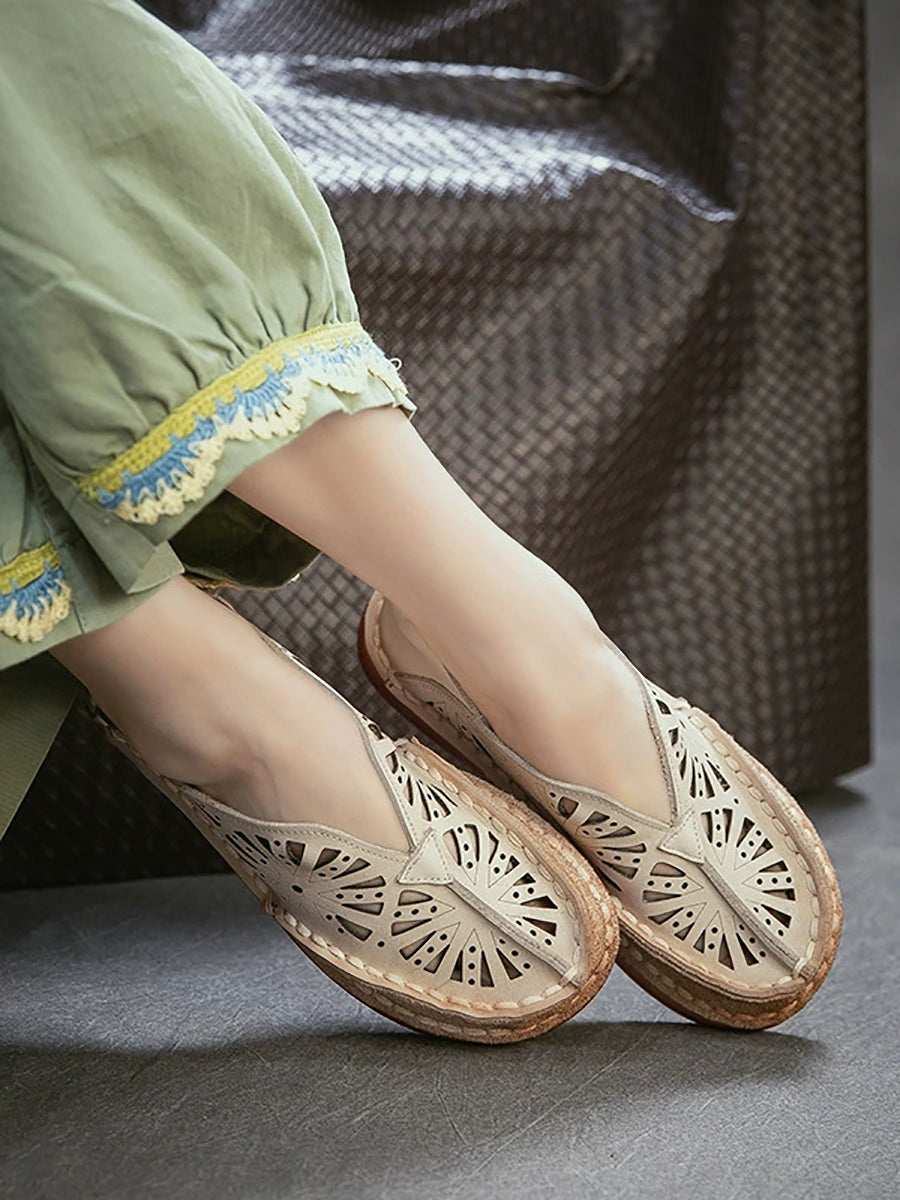 صنادل نسائية صيفية كلاسيكية من الجلد المجوف