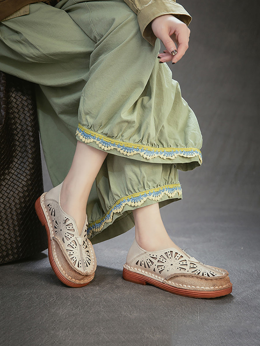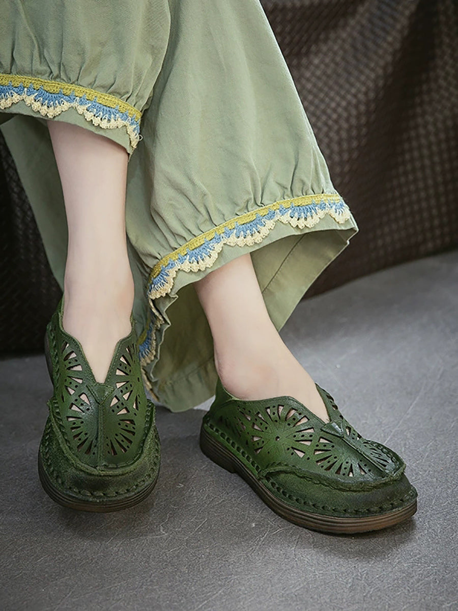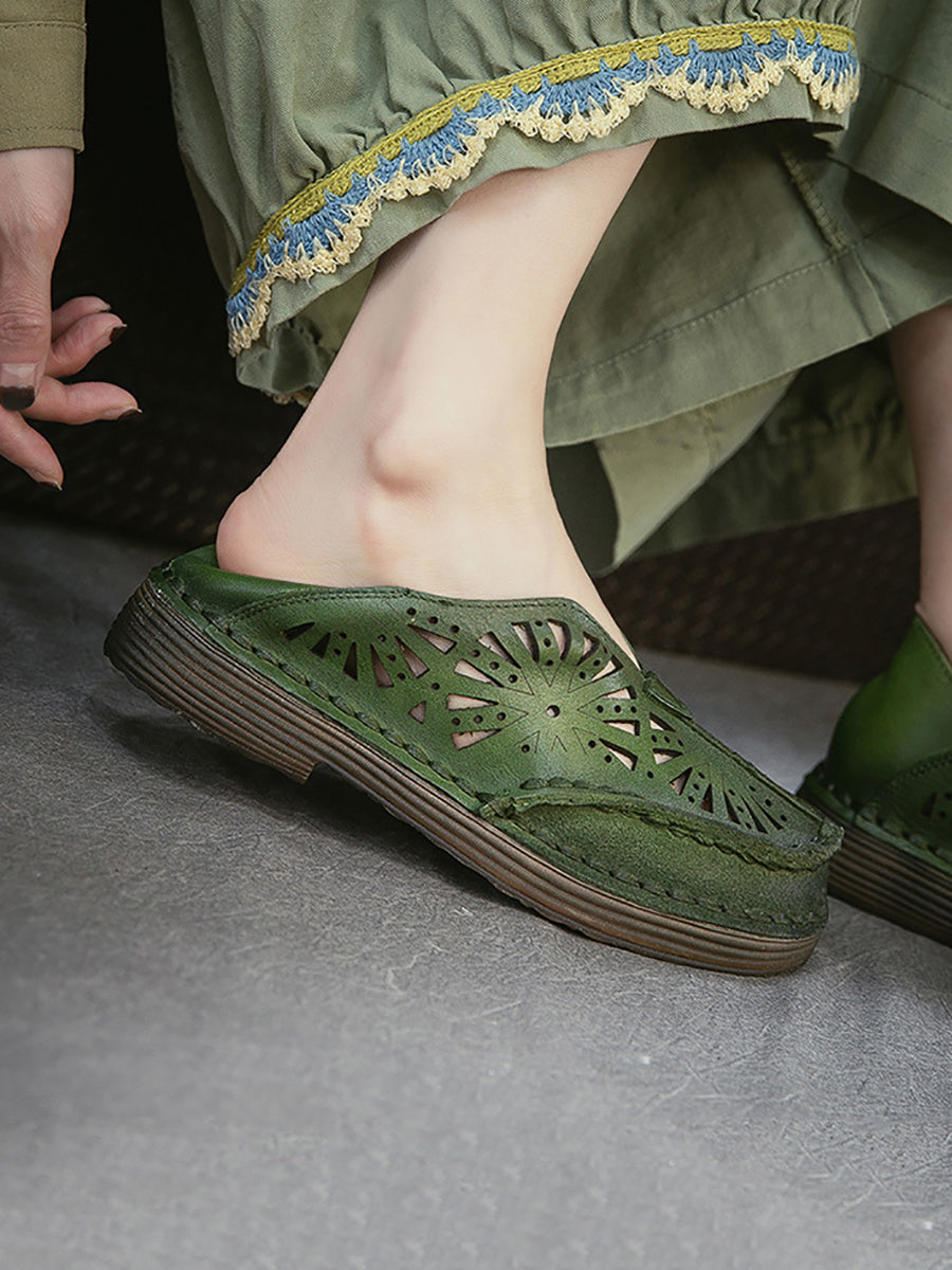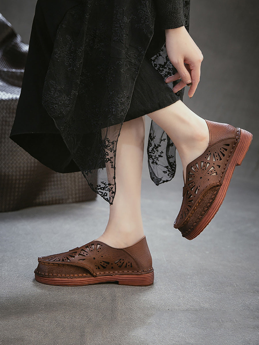 صنادل نسائية صيفية كلاسيكية من الجلد المجوف
