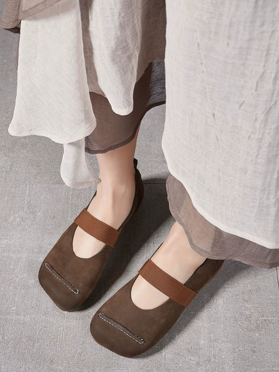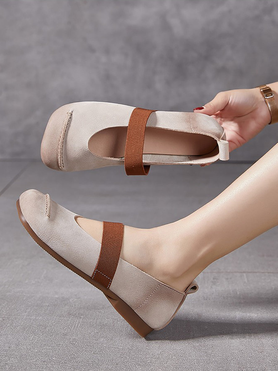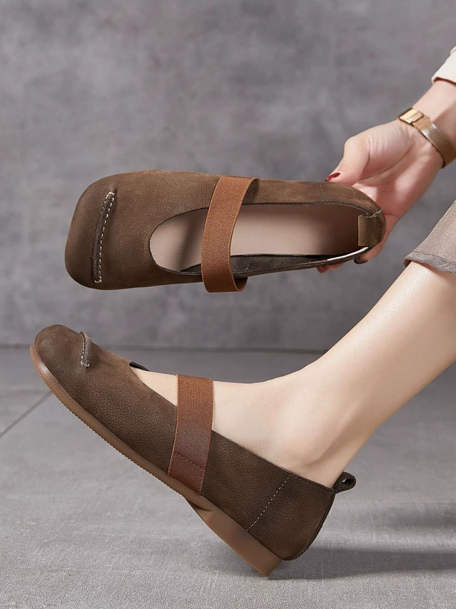 أحذية نسائية صيفية كلاسيكية من الجلد بكعب منخفض
