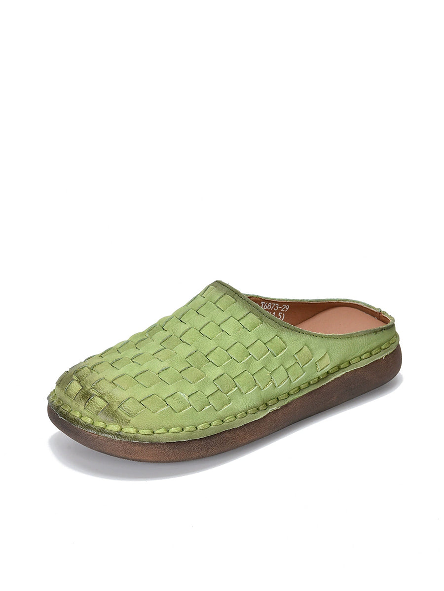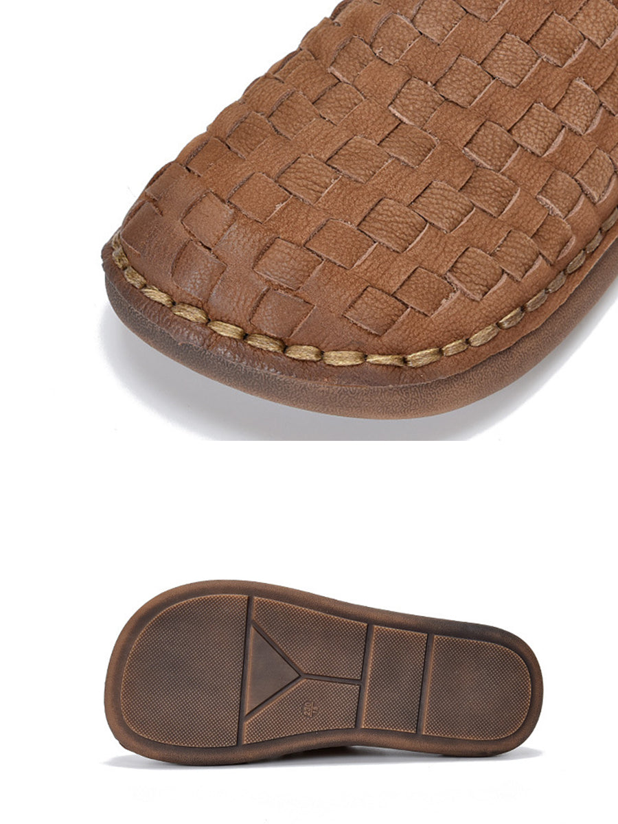 شباشب نسائية صيفية عتيقة من الجلد المنسوج