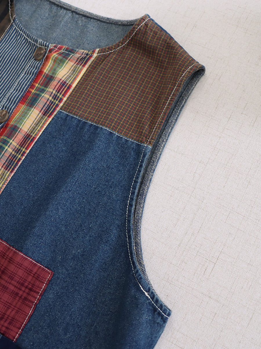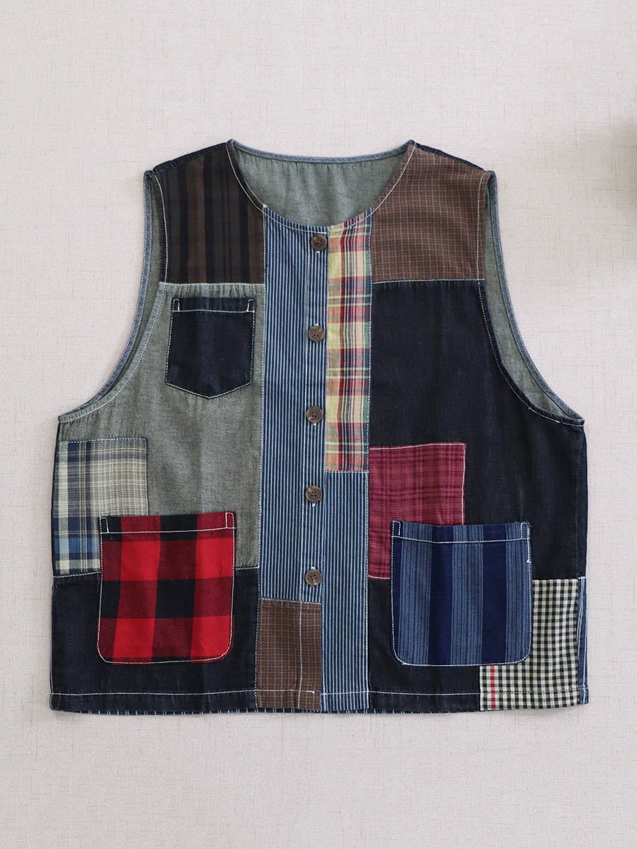 صدرية نسائية صيفية عتيقة من القطن المرقع برقبة دائرية