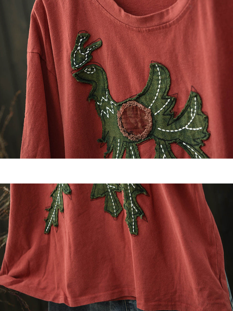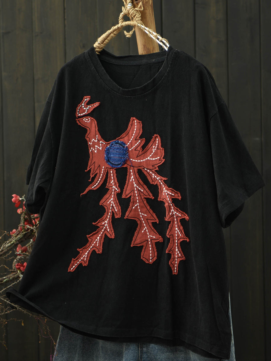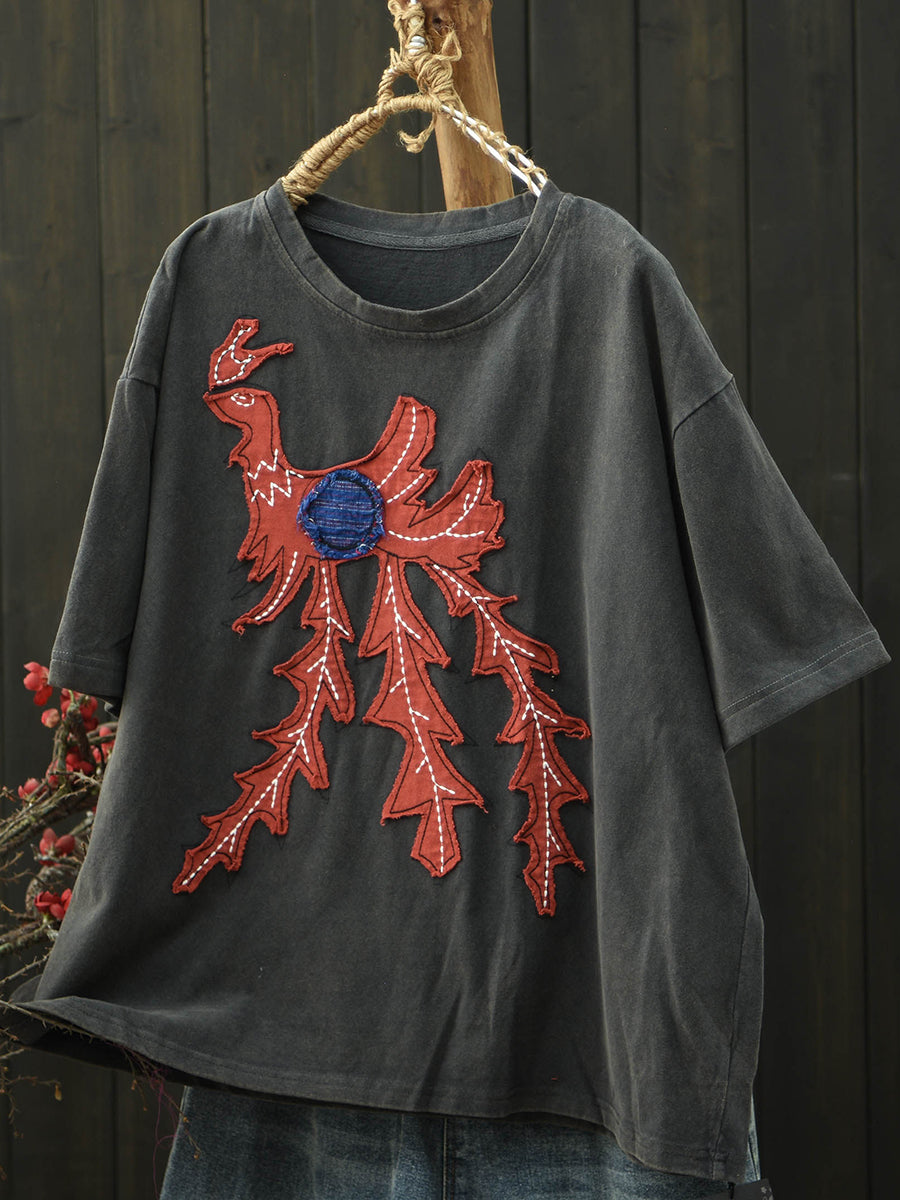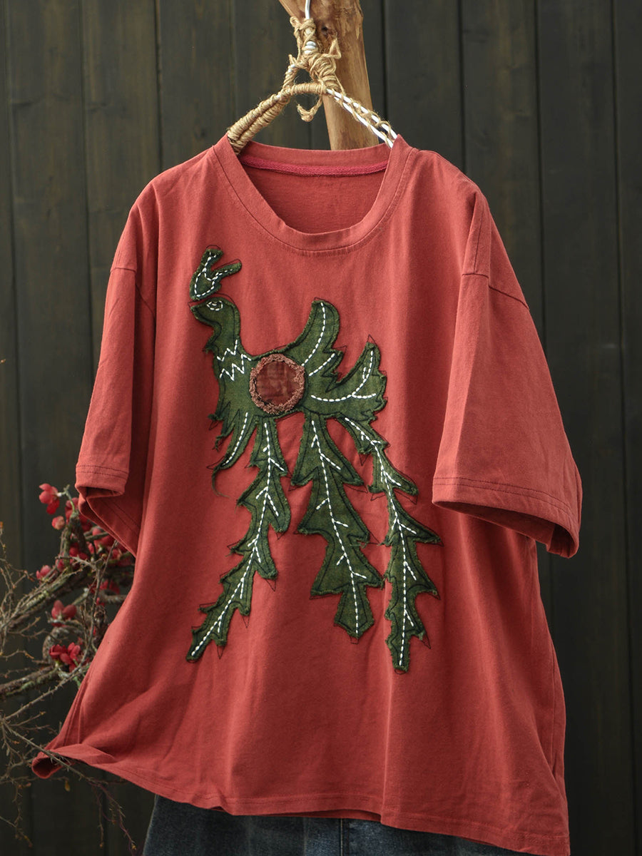 تيشيرت نسائي صيفي بتصميم كلاسيكي مرقع برقبة دائرية من القطن