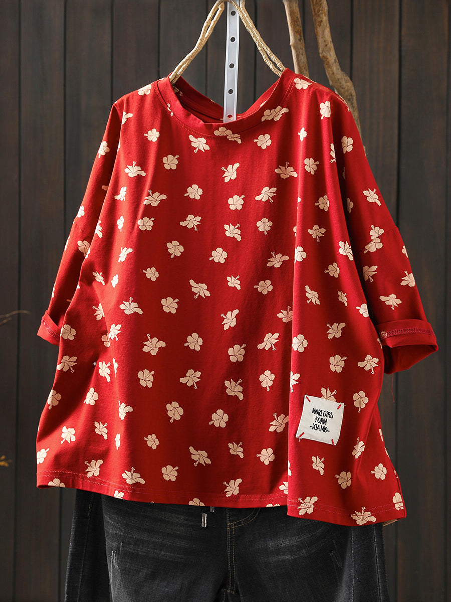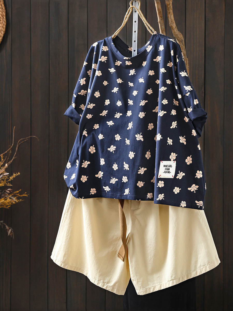 قميص نسائي صيفي بياقة دائرية بطبعة كلاسيكية