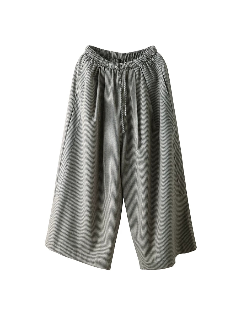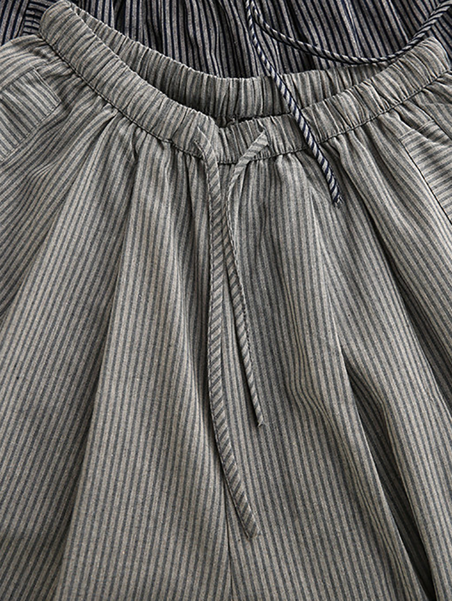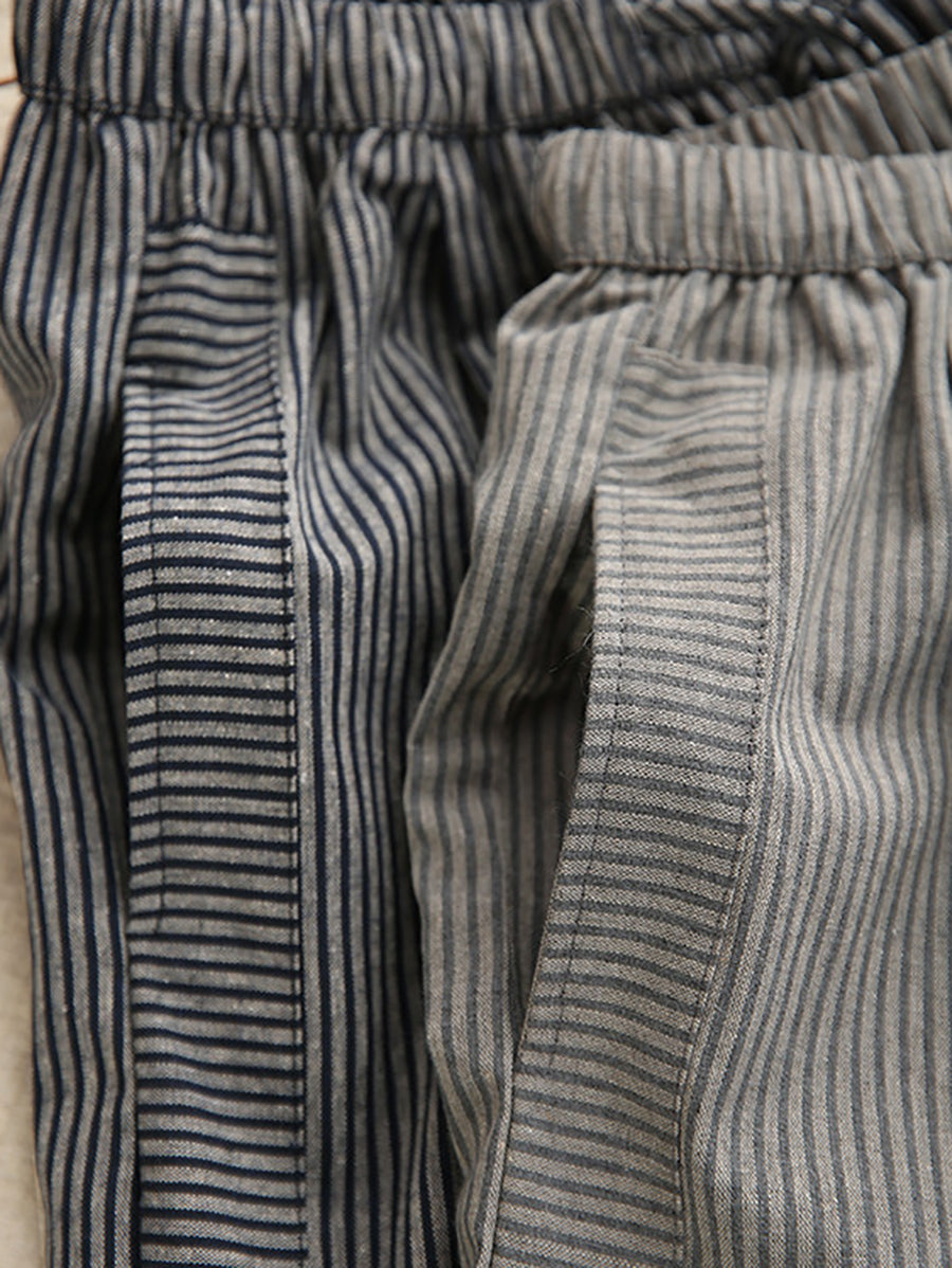 بنطلون نسائي صيفي واسع الساقين من الكتان المخطط بنمط كلاسيكي