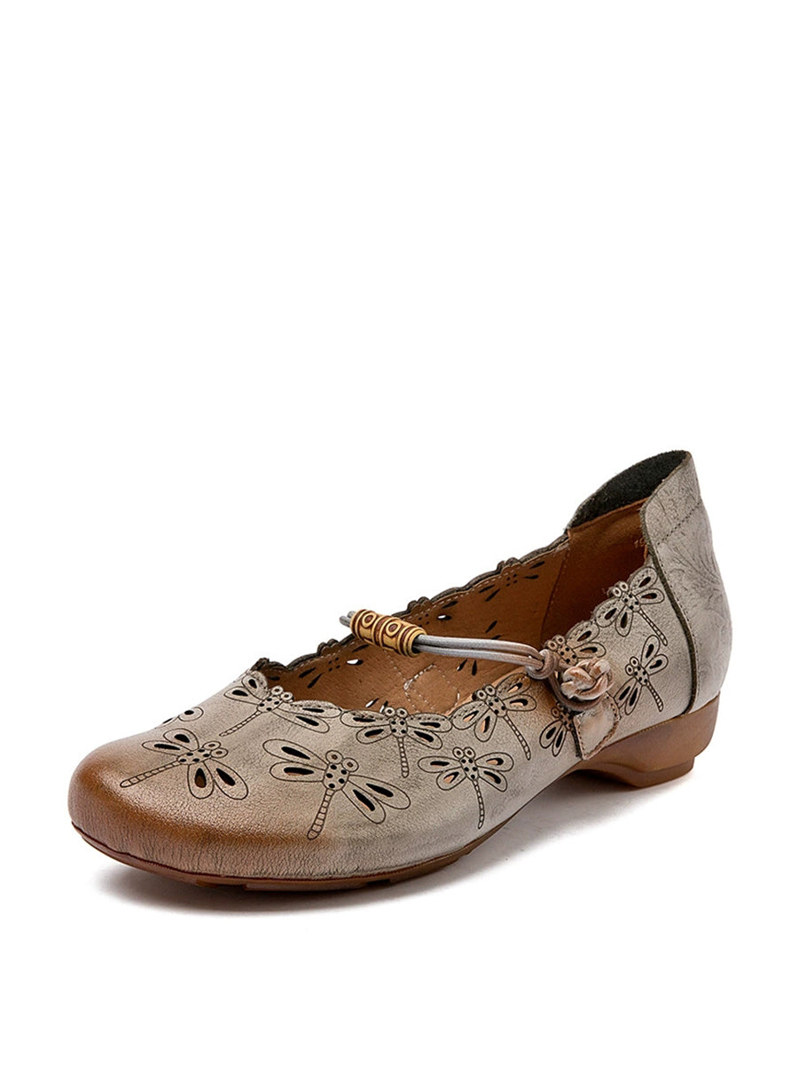 حذاء نسائي عتيق من الجلد الطبيعي بنقشة اليعسوب