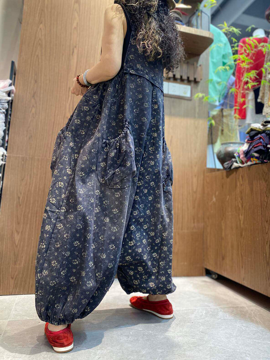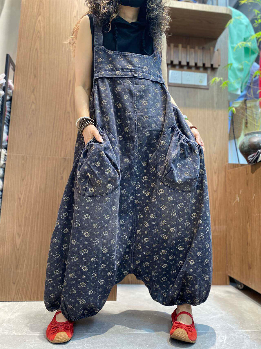 جمبسوت نسائي كلاسيكي من الدنيم الزهري بخصر منخفض