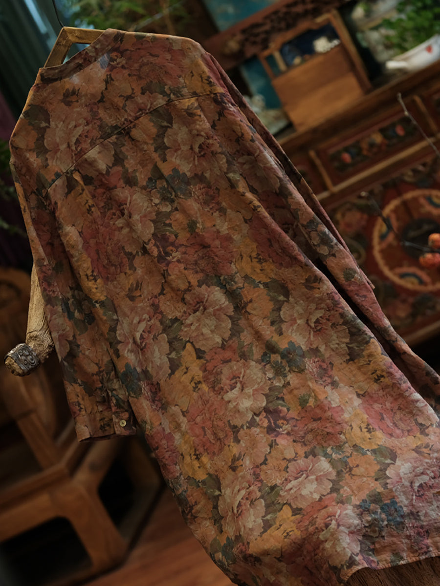 قميص نسائي طويل بأزرار من رامي بتصميم عتيق مزين بالزهور
