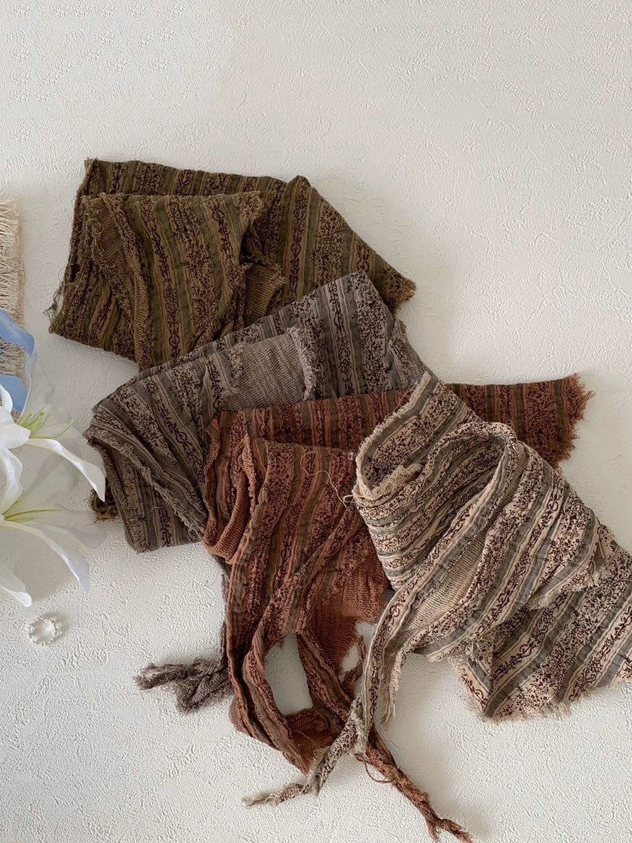 وشاح نسائي مثلث الشكل مزين بنقوش زهور عتيقة