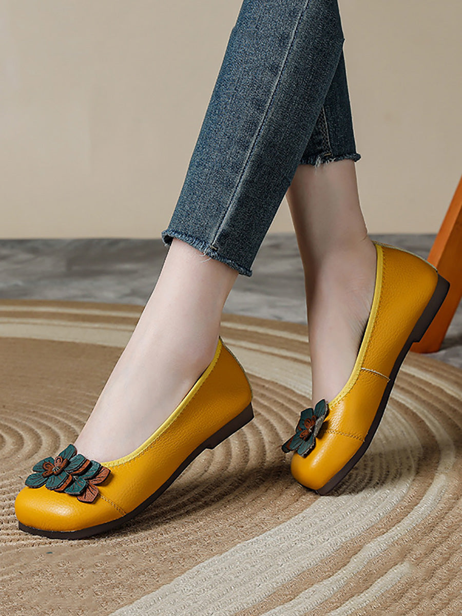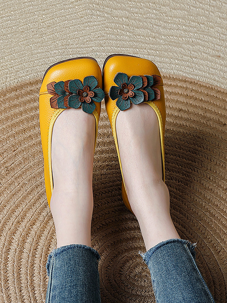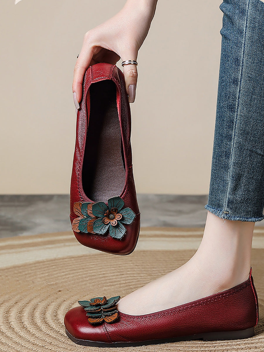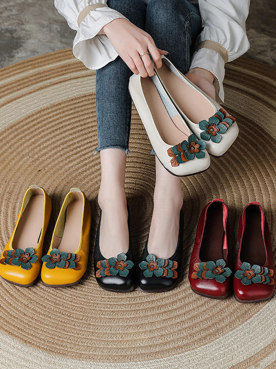 أحذية نسائية عتيقة من الجلد مزينة بنقوش زهور