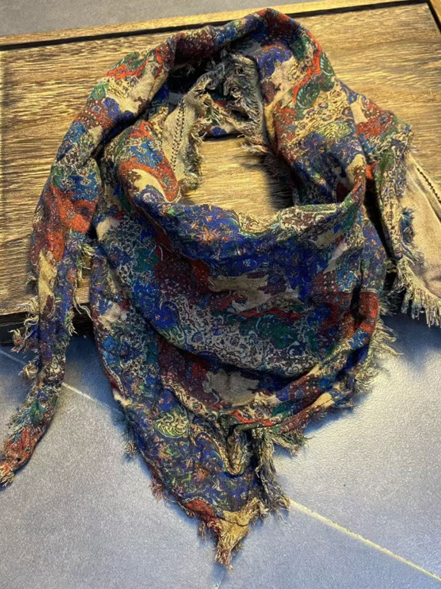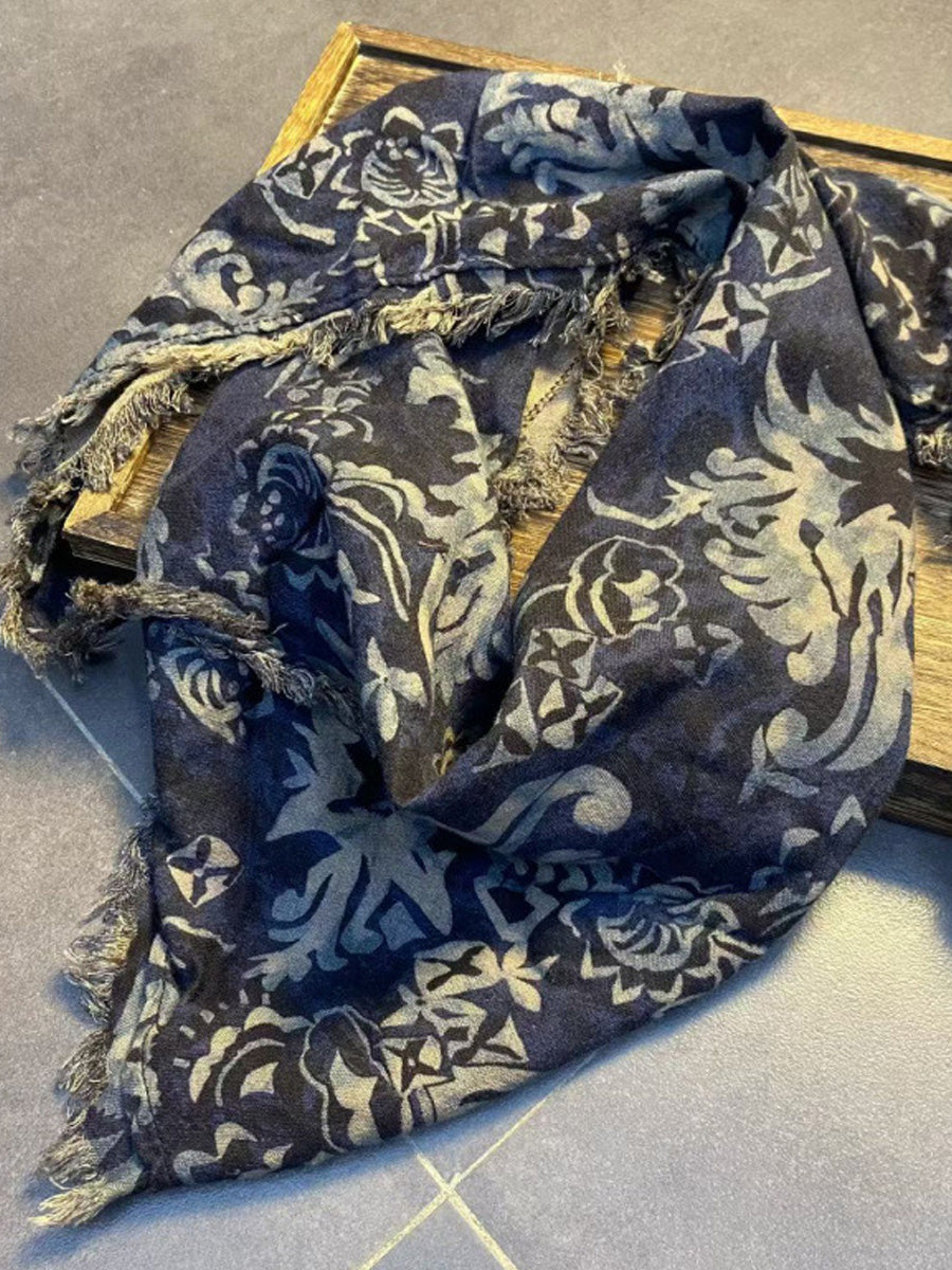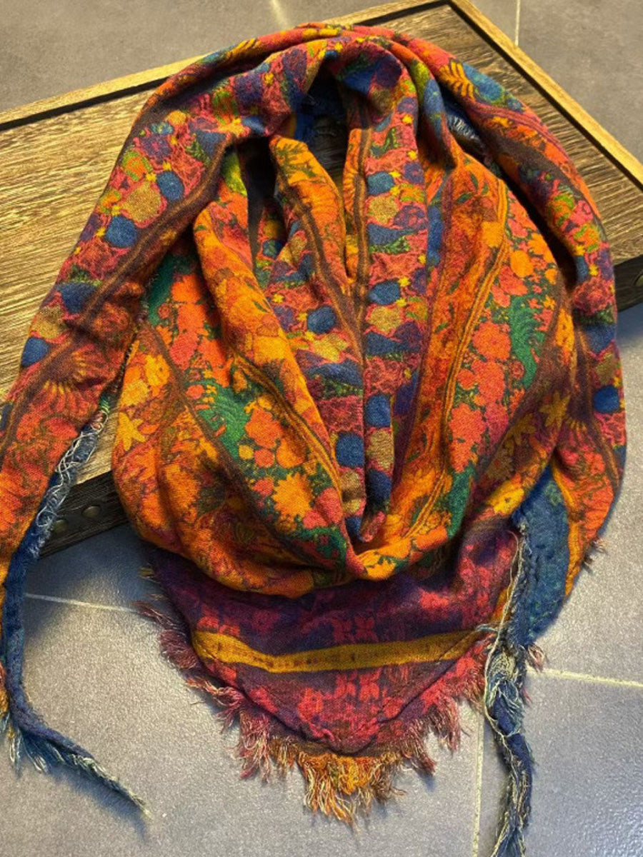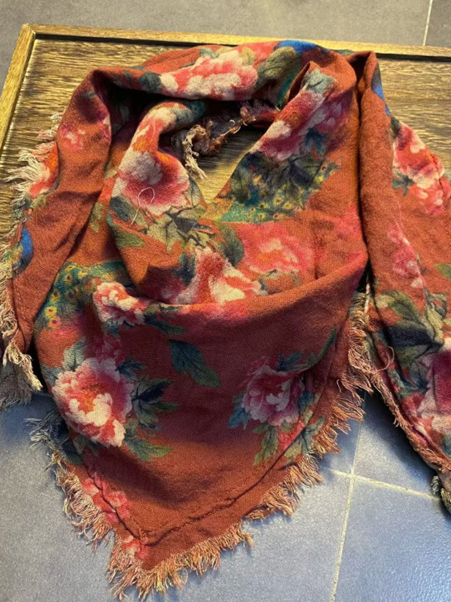 وشاح نسائي مثلث الشكل ذو حافة خام بتصميم زهور عتيقة