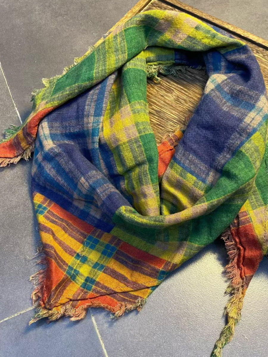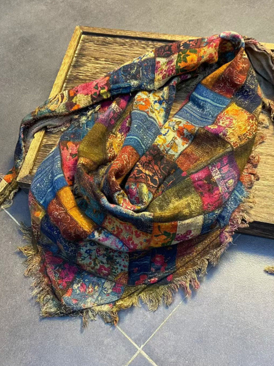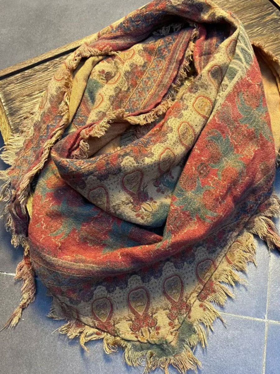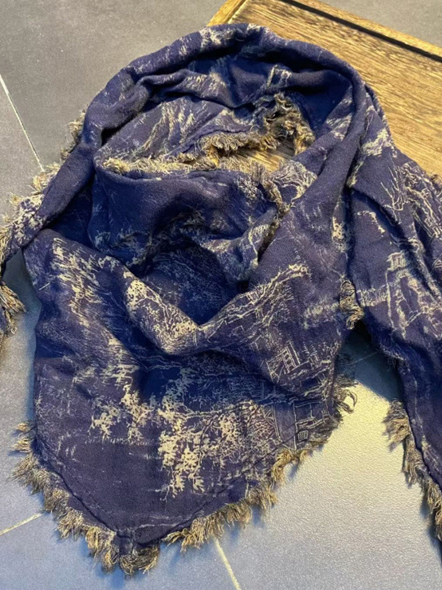 وشاح نسائي مثلث الشكل ذو حافة خام بتصميم زهور عتيقة