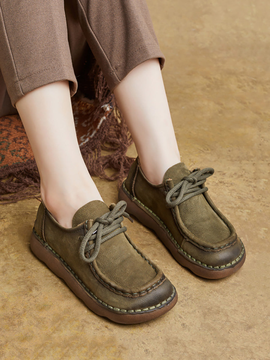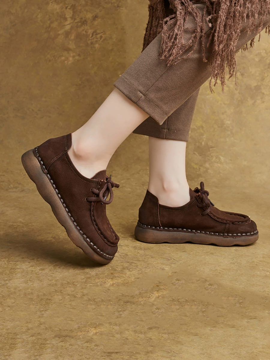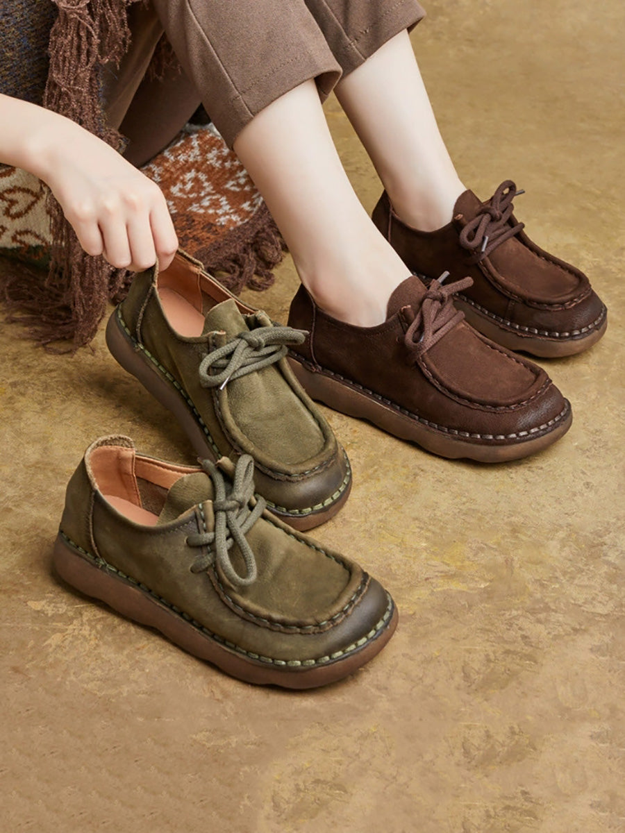 أحذية نسائية كلاسيكية مسطحة من الجلد الطبيعي