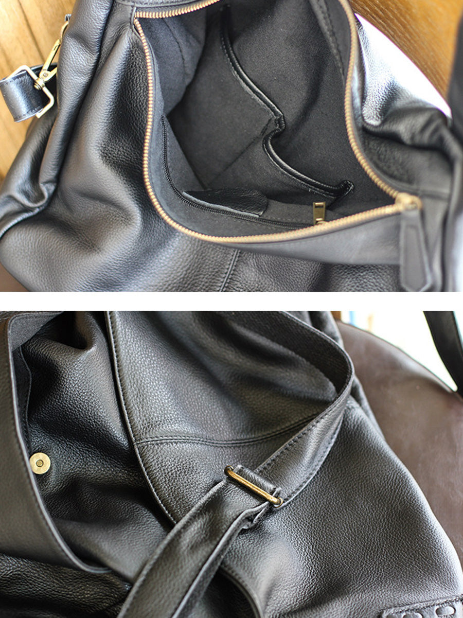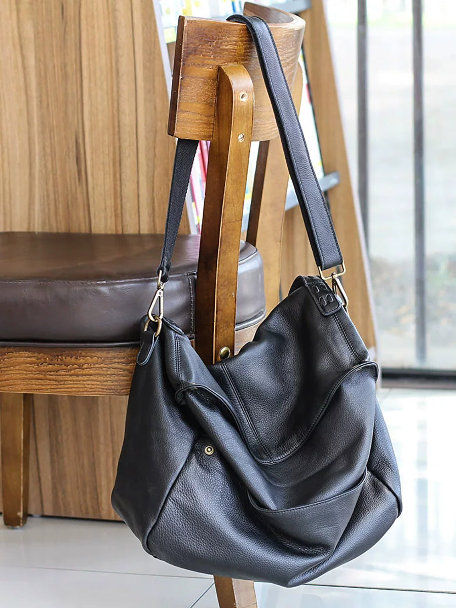 حقيبة كتف نسائية عتيقة من الجلد الطبيعي بسعة كبيرة