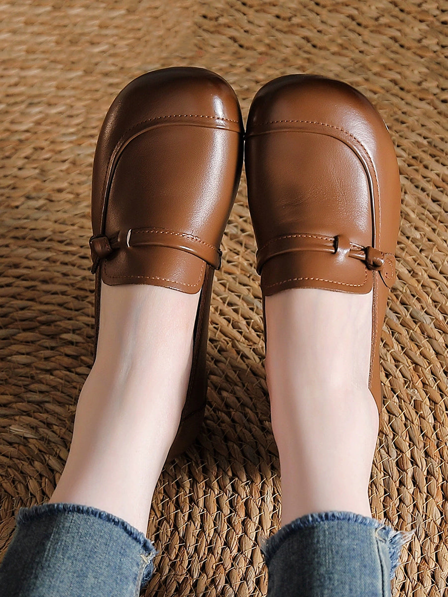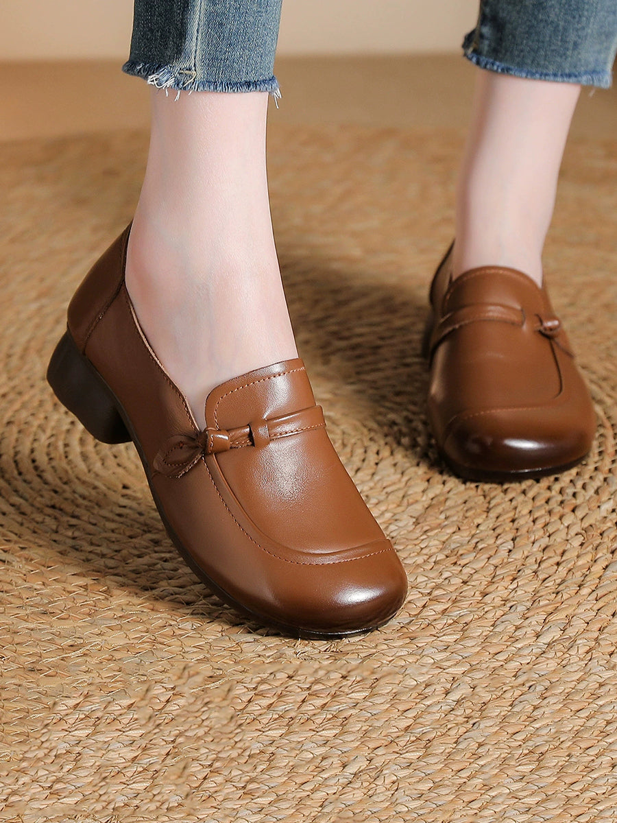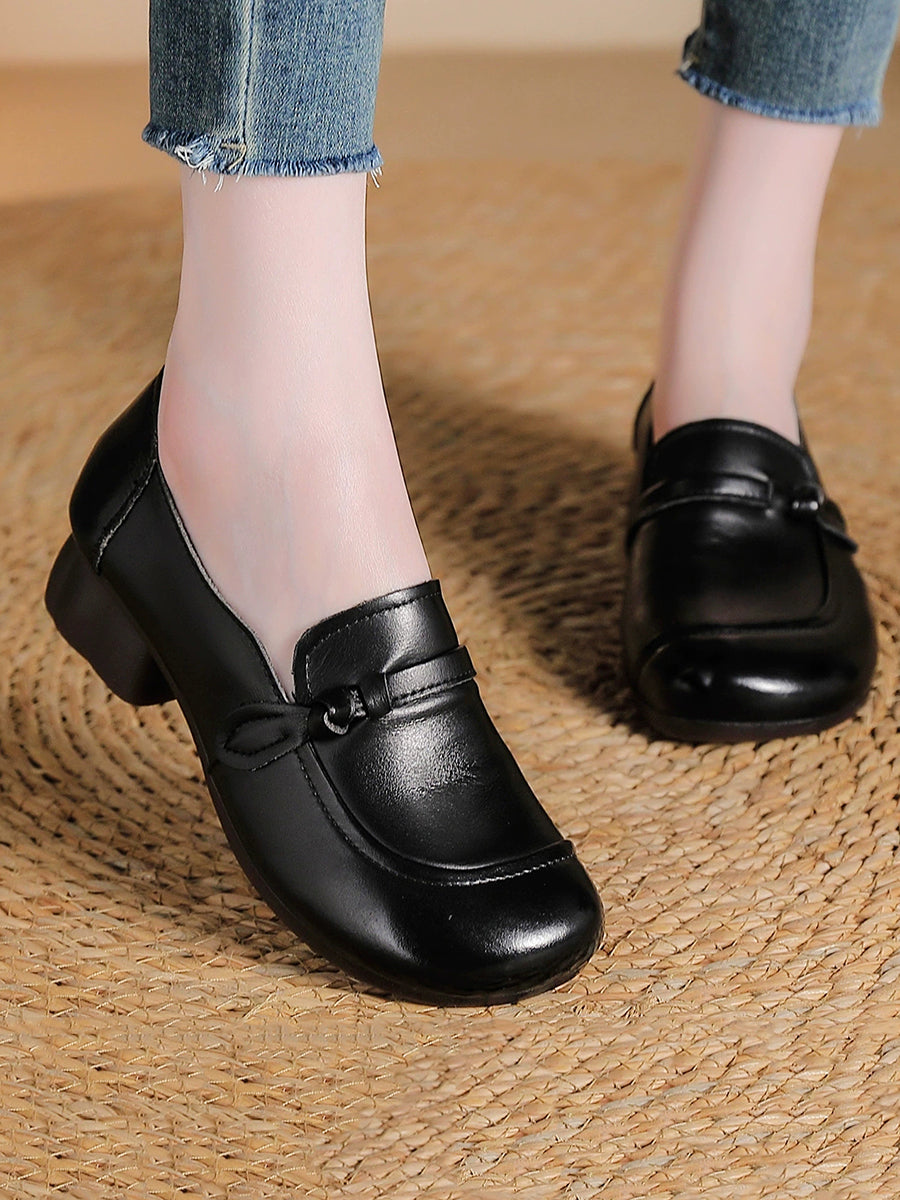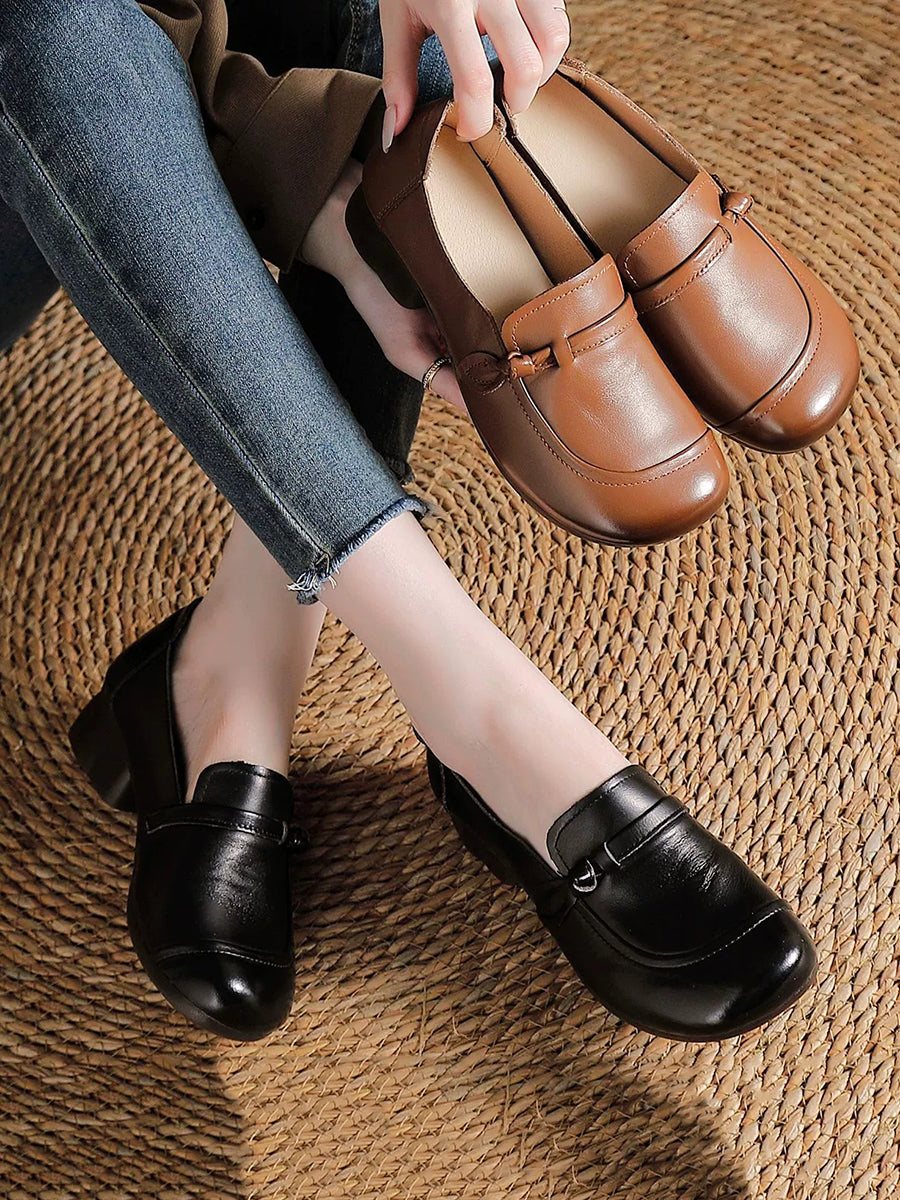 أحذية نسائية عتيقة من الجلد الطبيعي بكعب متوسط