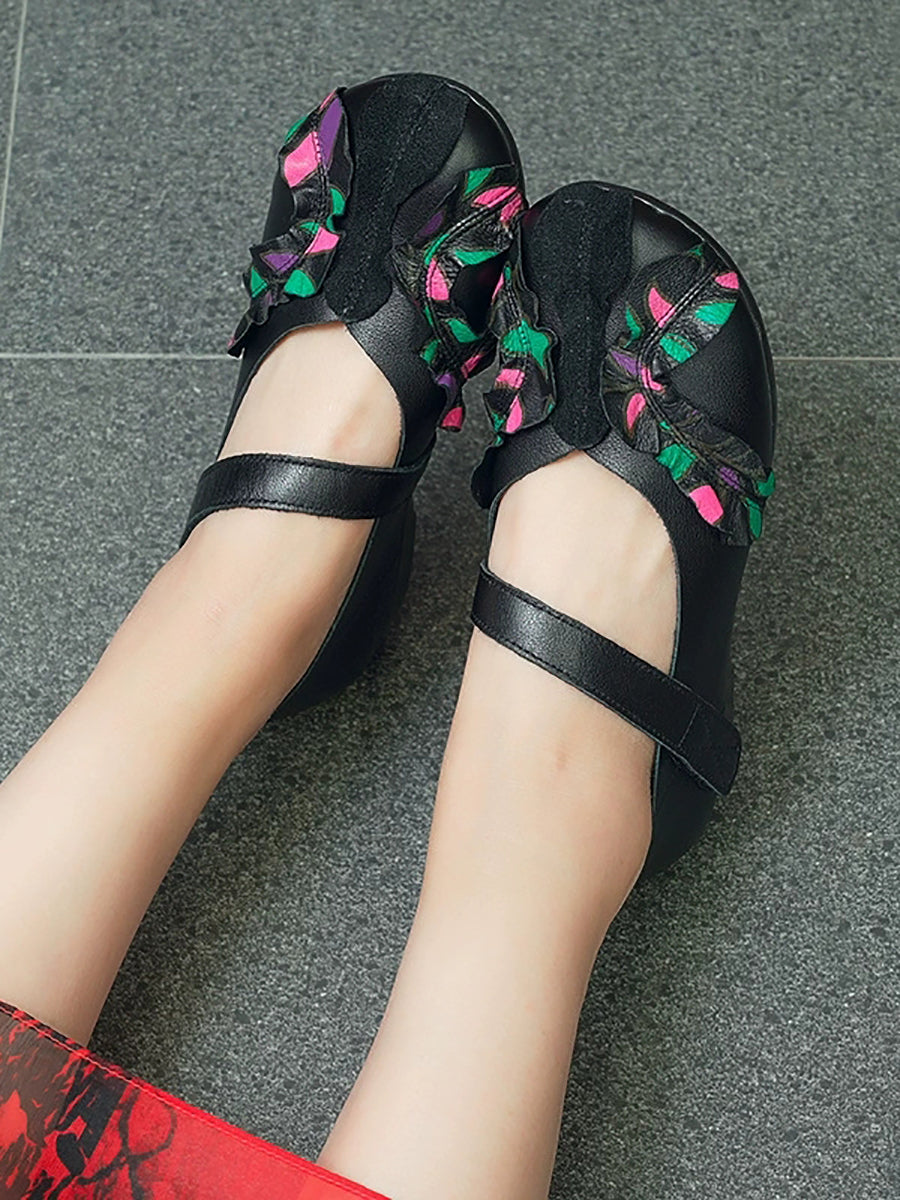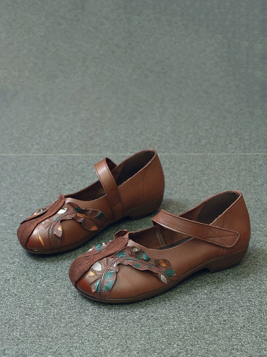 أحذية نسائية كلاسيكية من الجلد الطبيعي بتصميم متداخل وكعب منخفض