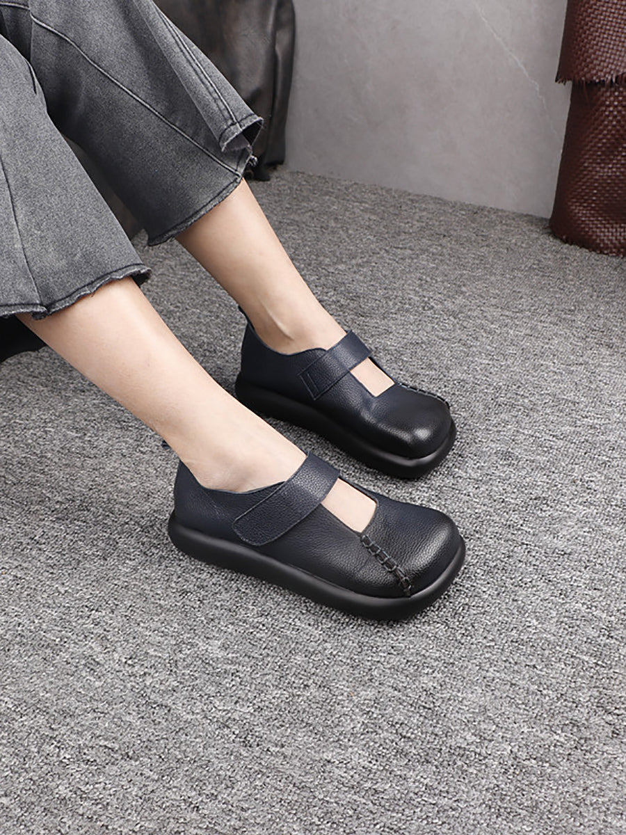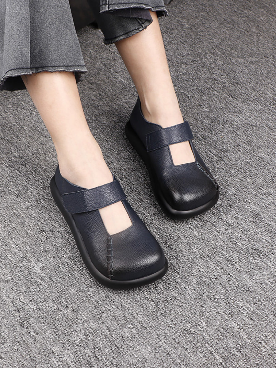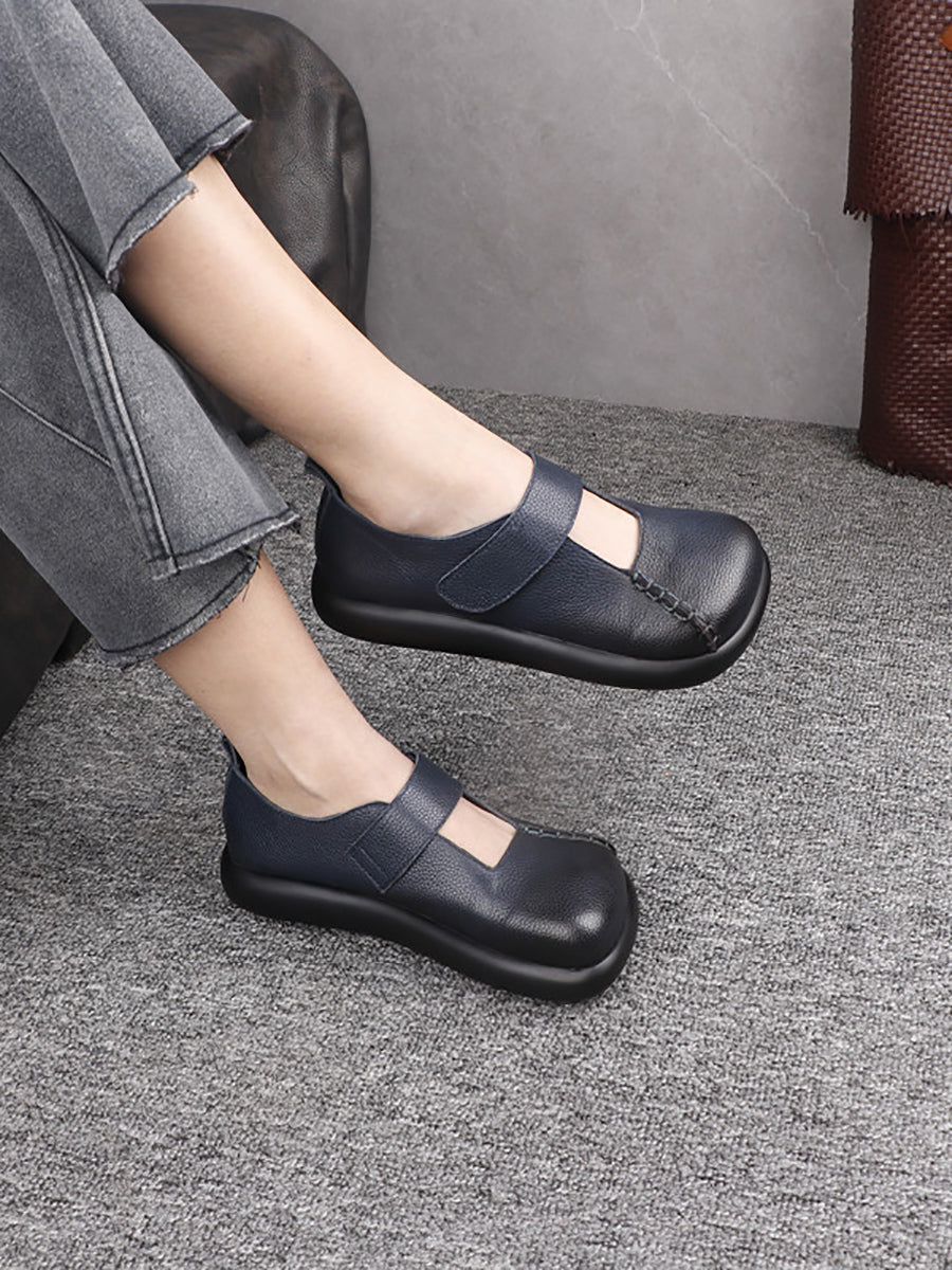 أحذية نسائية كلاسيكية من الجلد الطبيعي بمقدمة مربعة