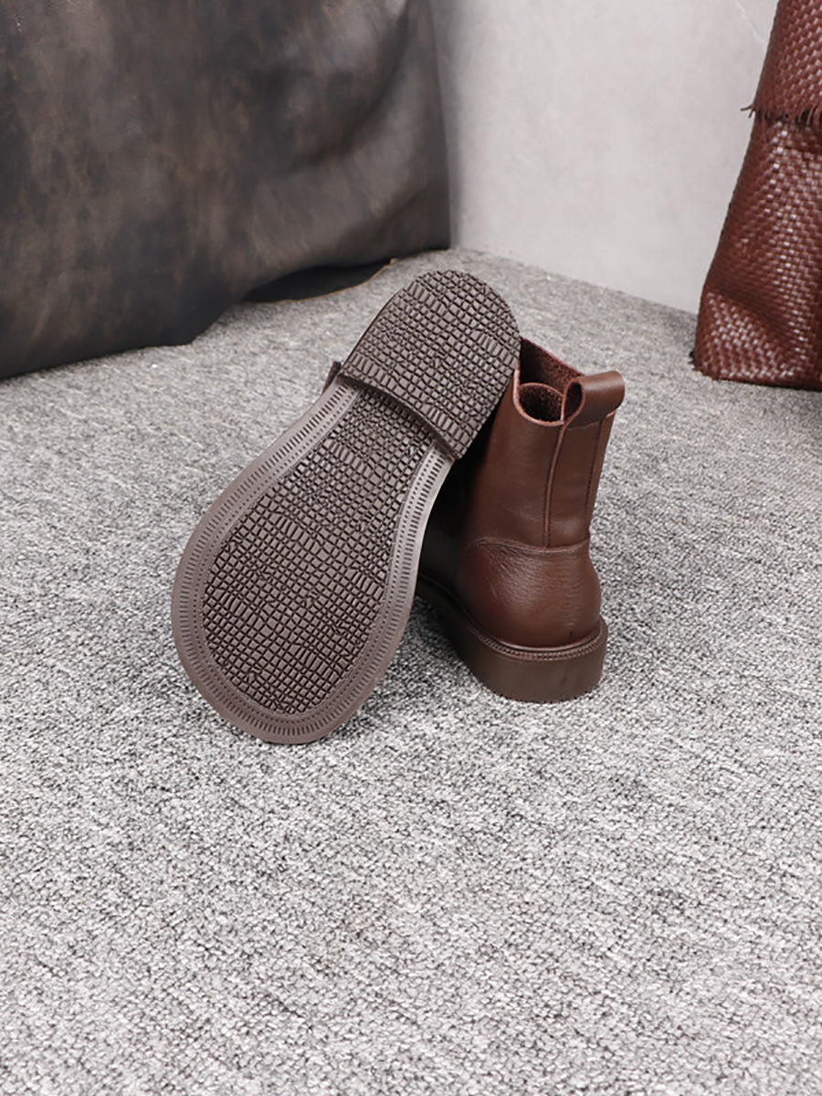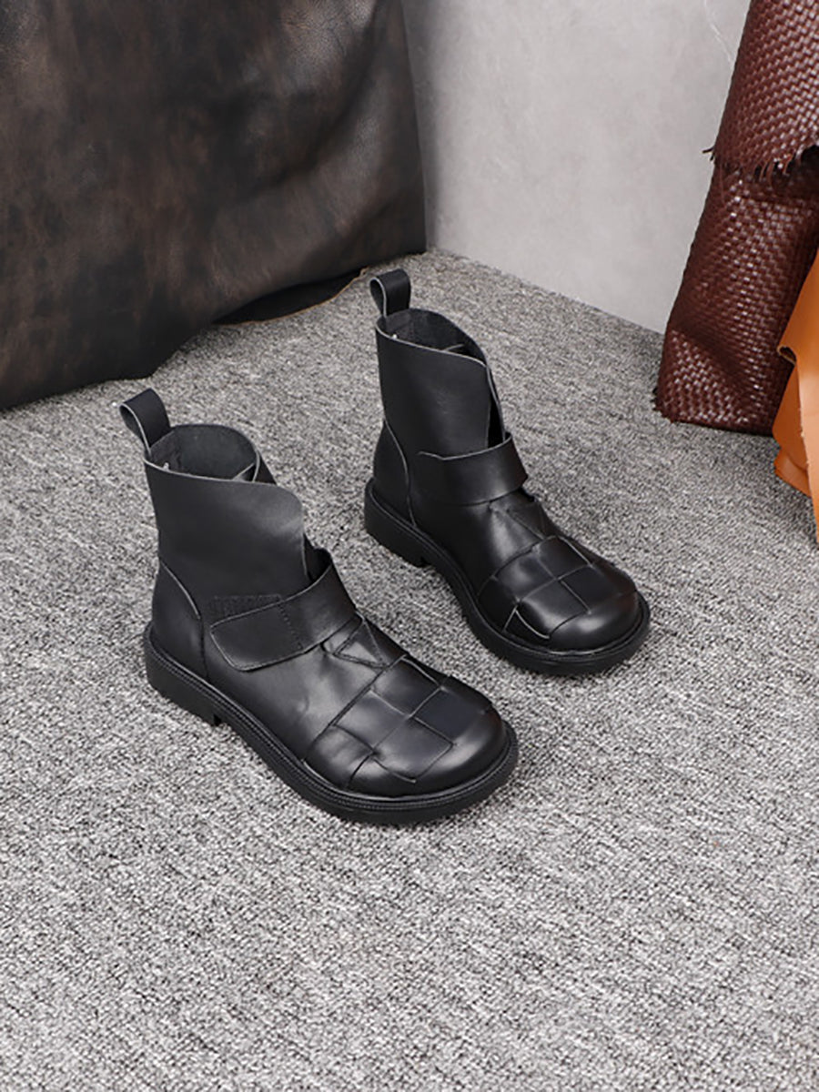أحذية نسائية كلاسيكية من الجلد الطبيعي المنسوج للكاحل