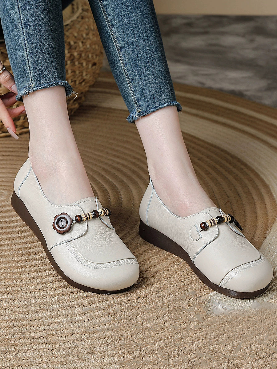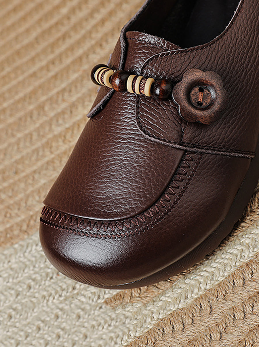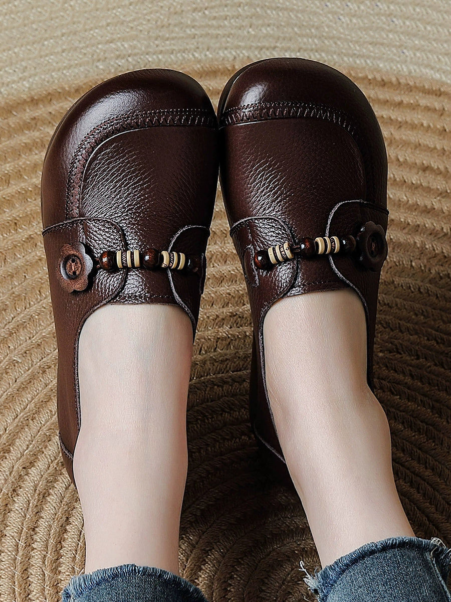 أحذية نسائية عتيقة من الجلد الطبيعي والخرز الخشبي
