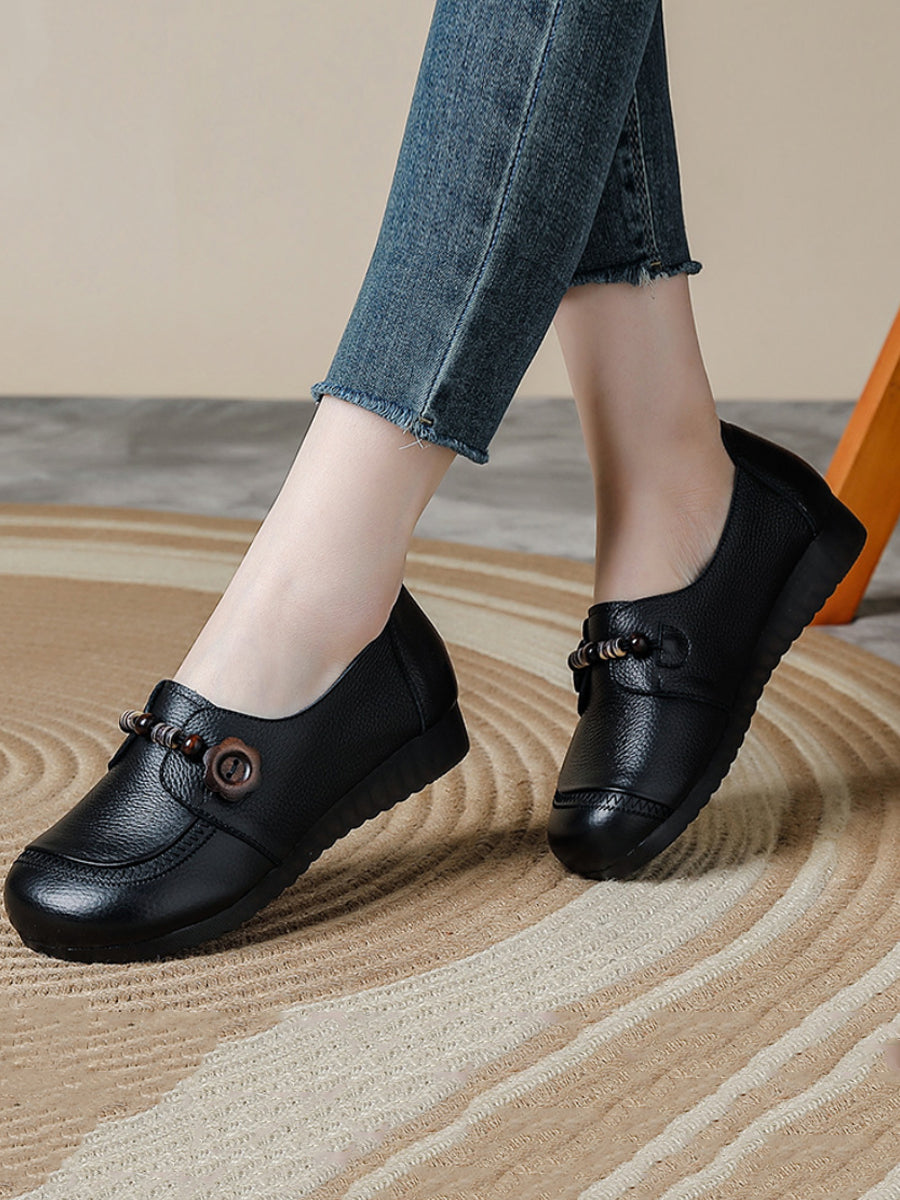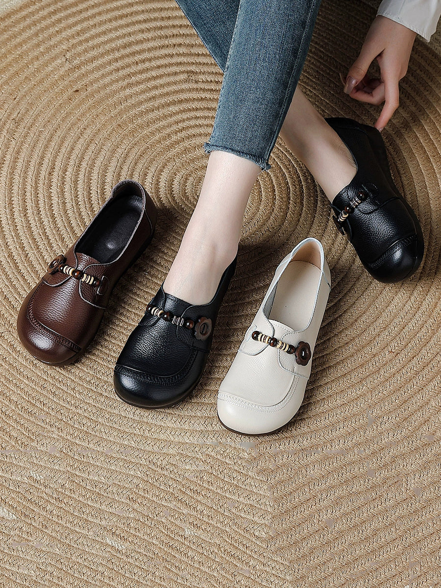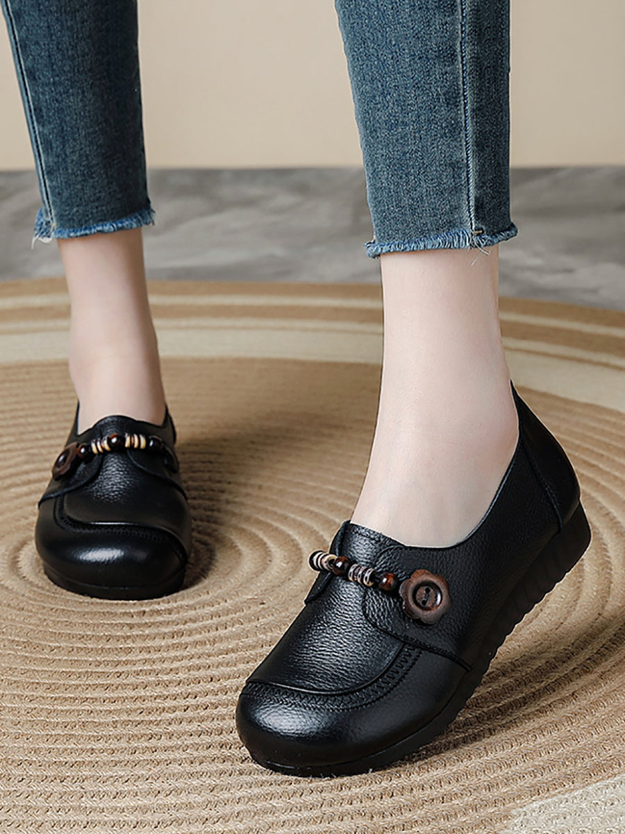 أحذية نسائية عتيقة من الجلد الطبيعي والخرز الخشبي