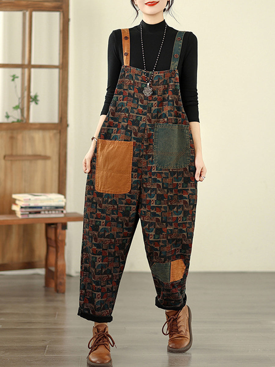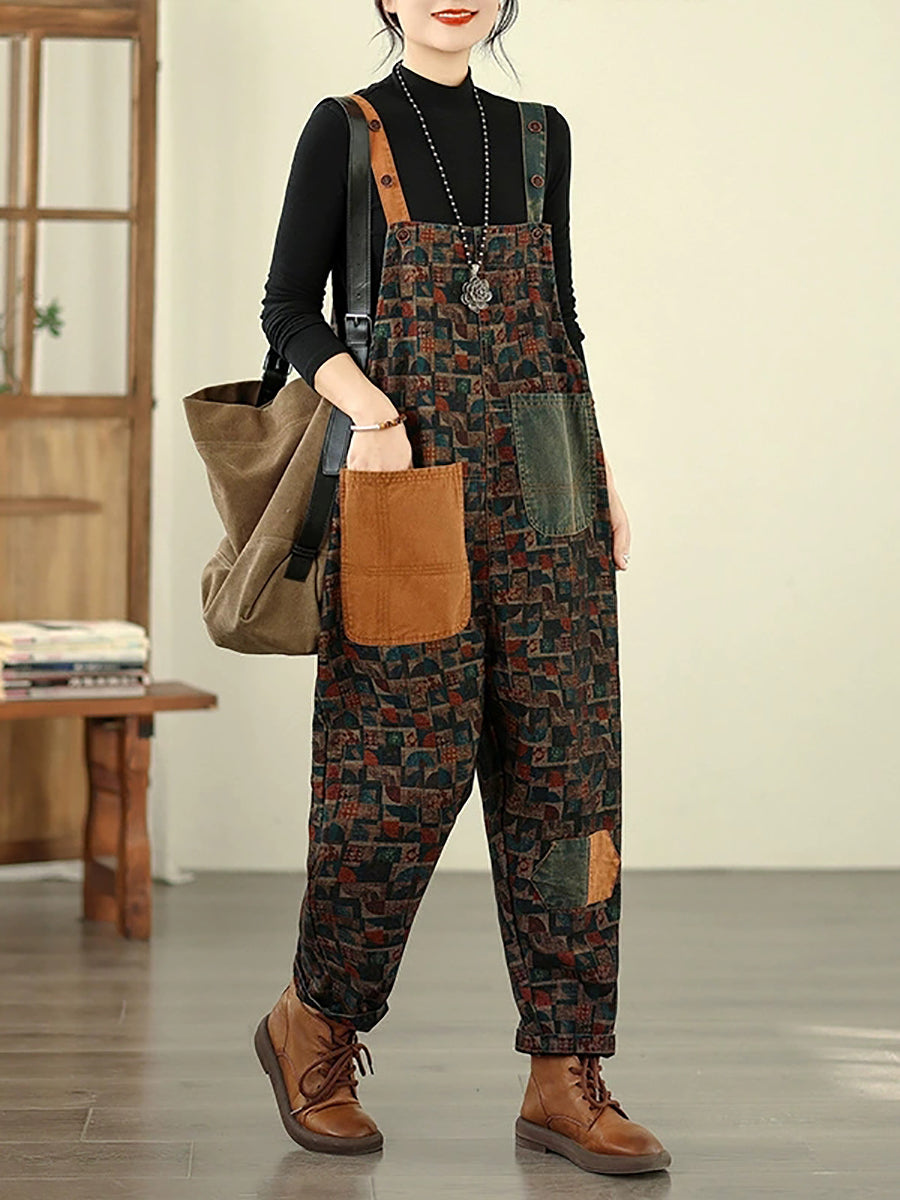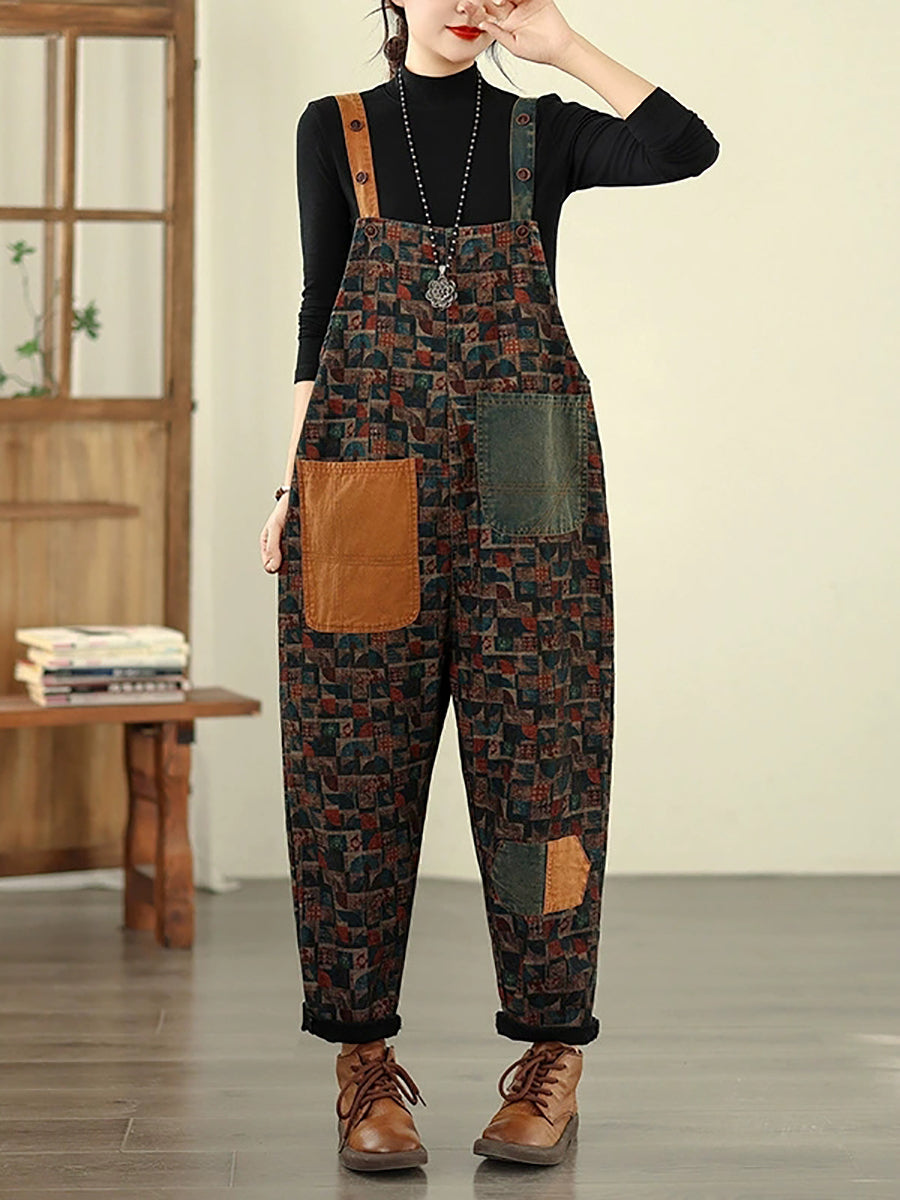 جمبسوت نسائي فضفاض من القطن بتصميم مرقع عتيق