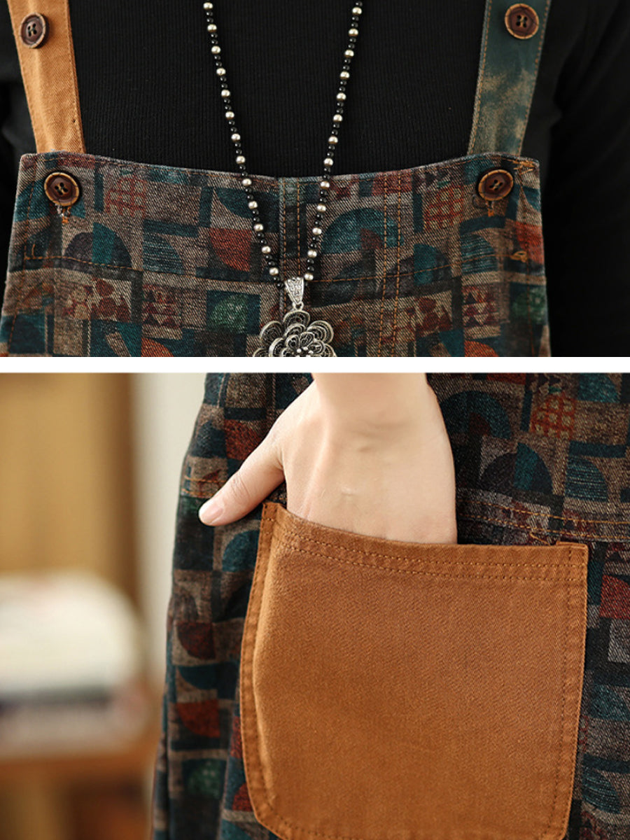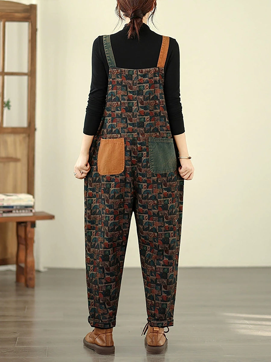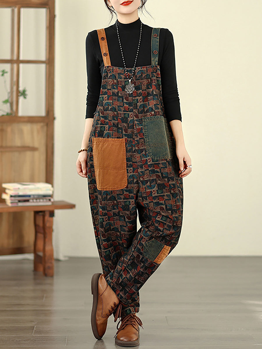 جمبسوت نسائي فضفاض من القطن بتصميم مرقع عتيق