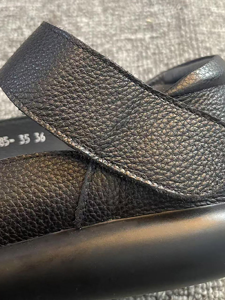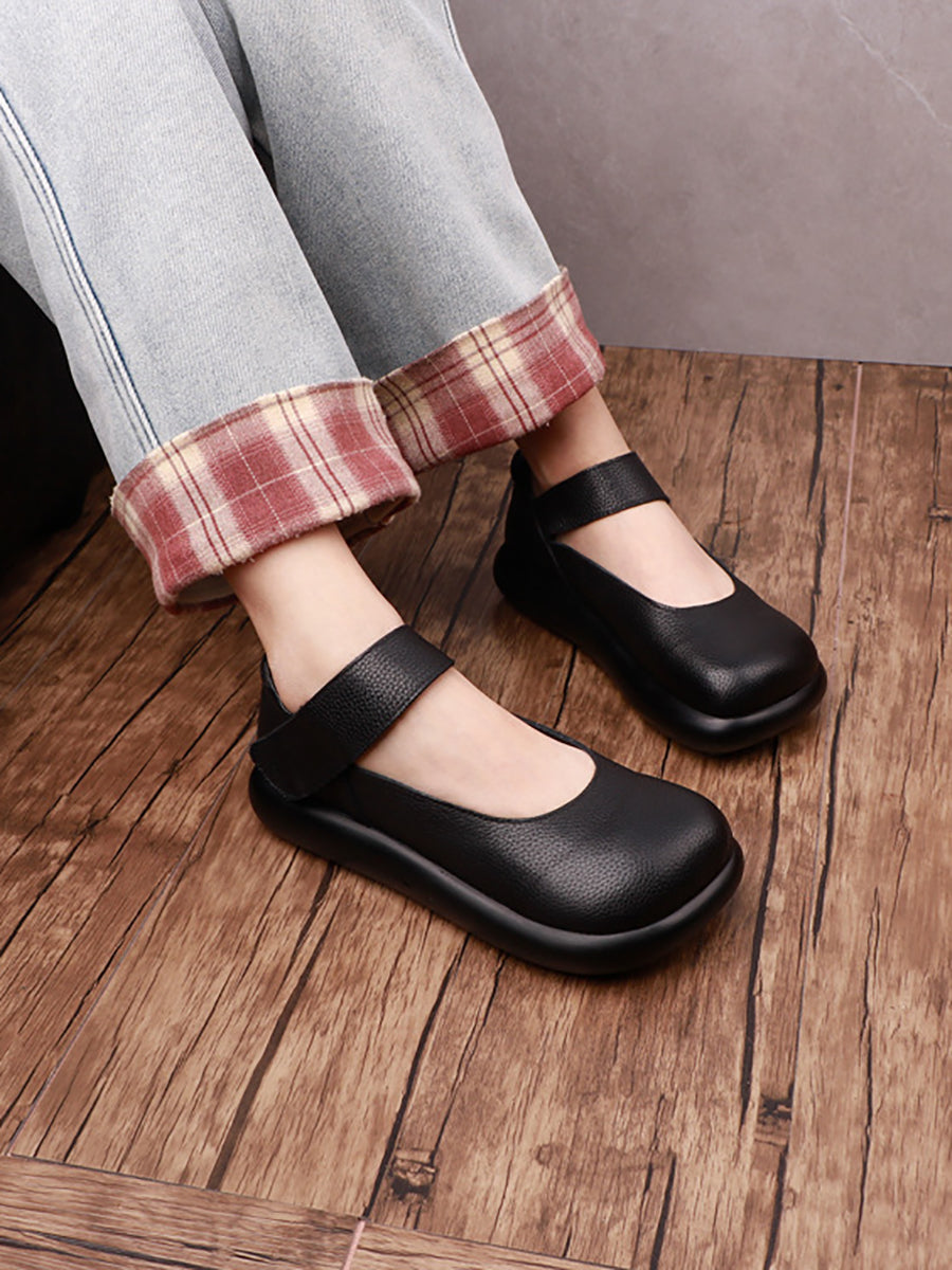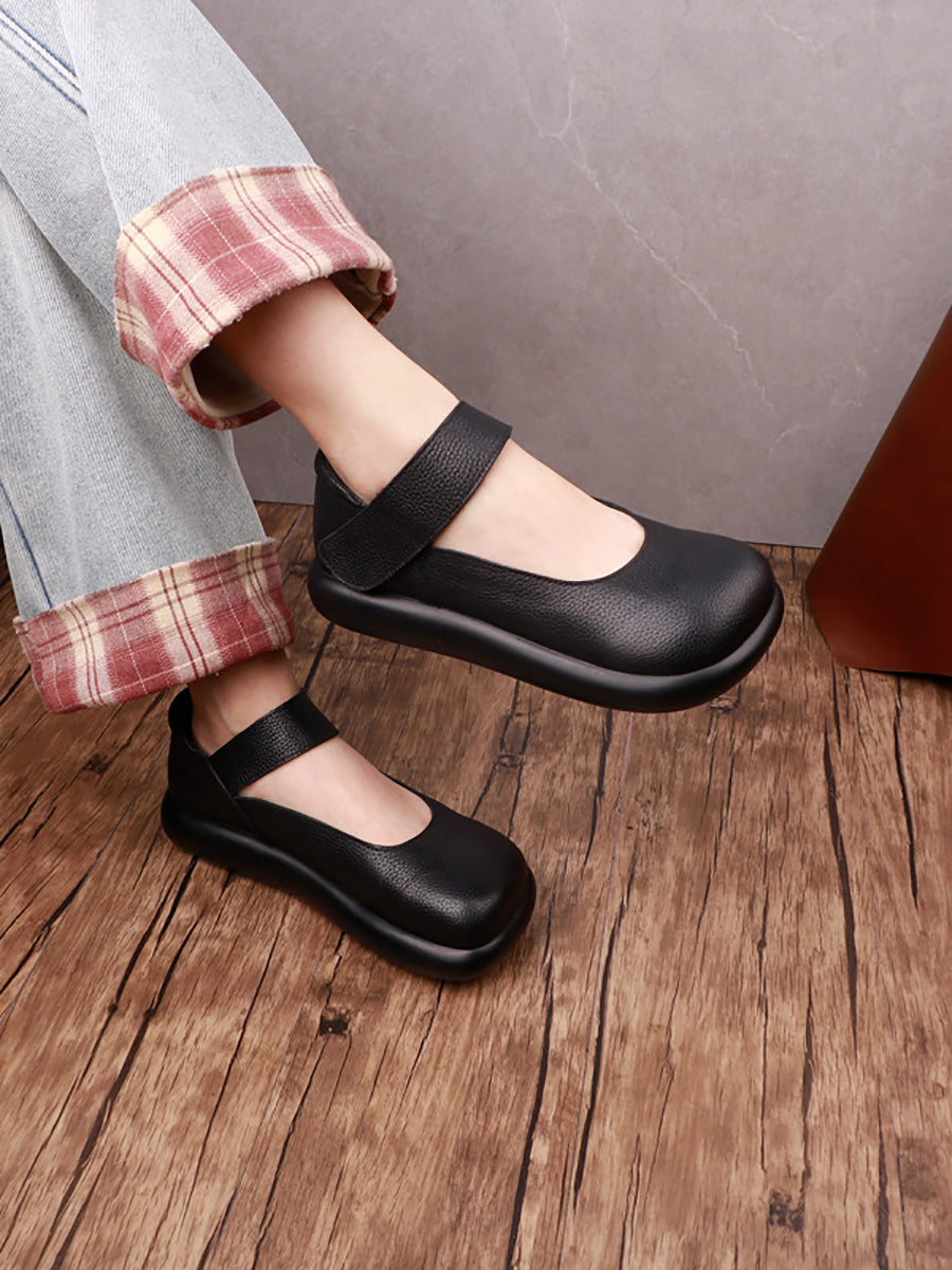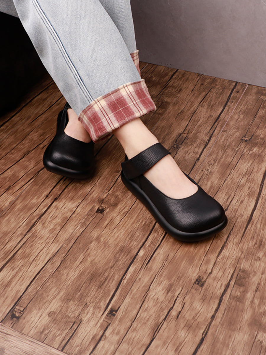 أحذية نسائية كلاسيكية مسطحة من الجلد الطبيعي الناعم