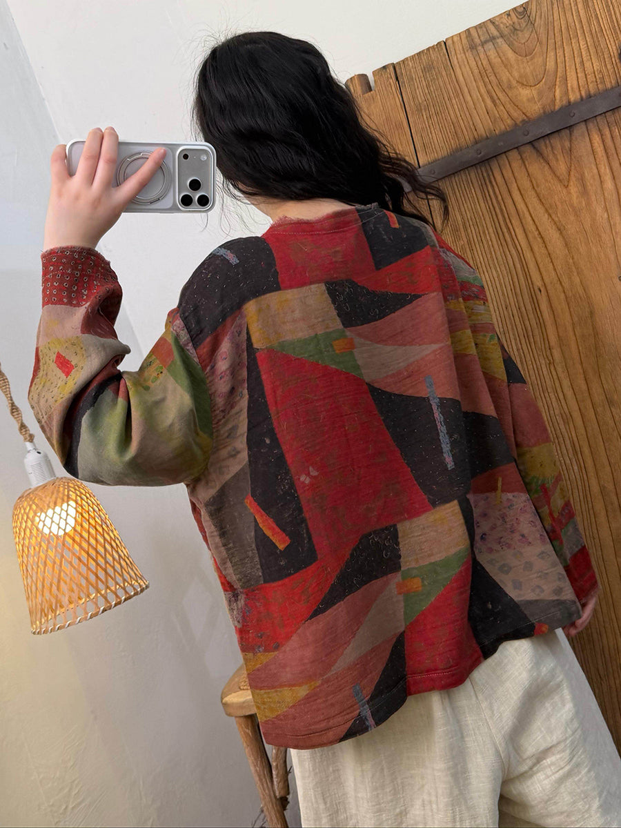 قميص نسائي عتيق بياقة دائرية مزين بزهرة الربيع