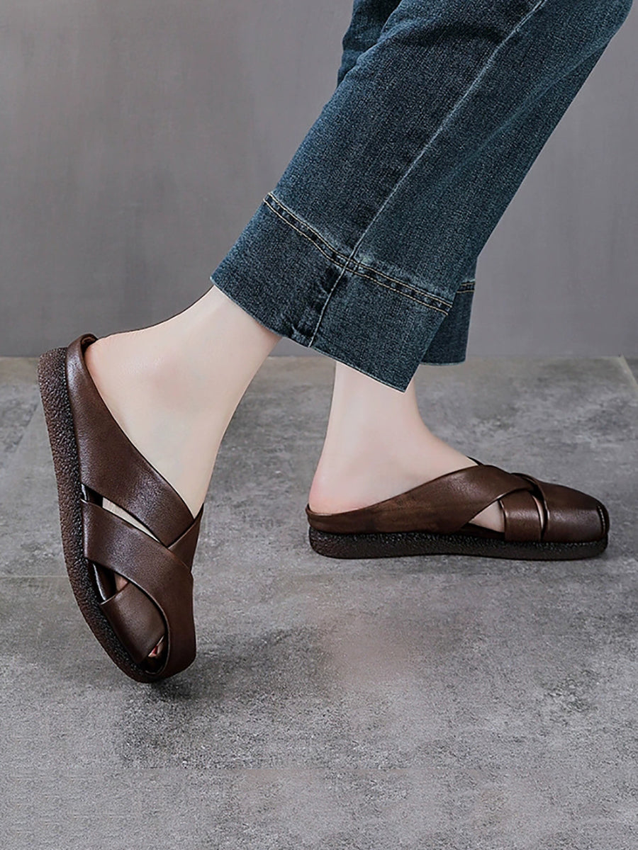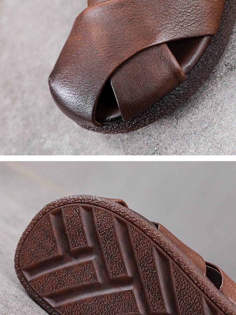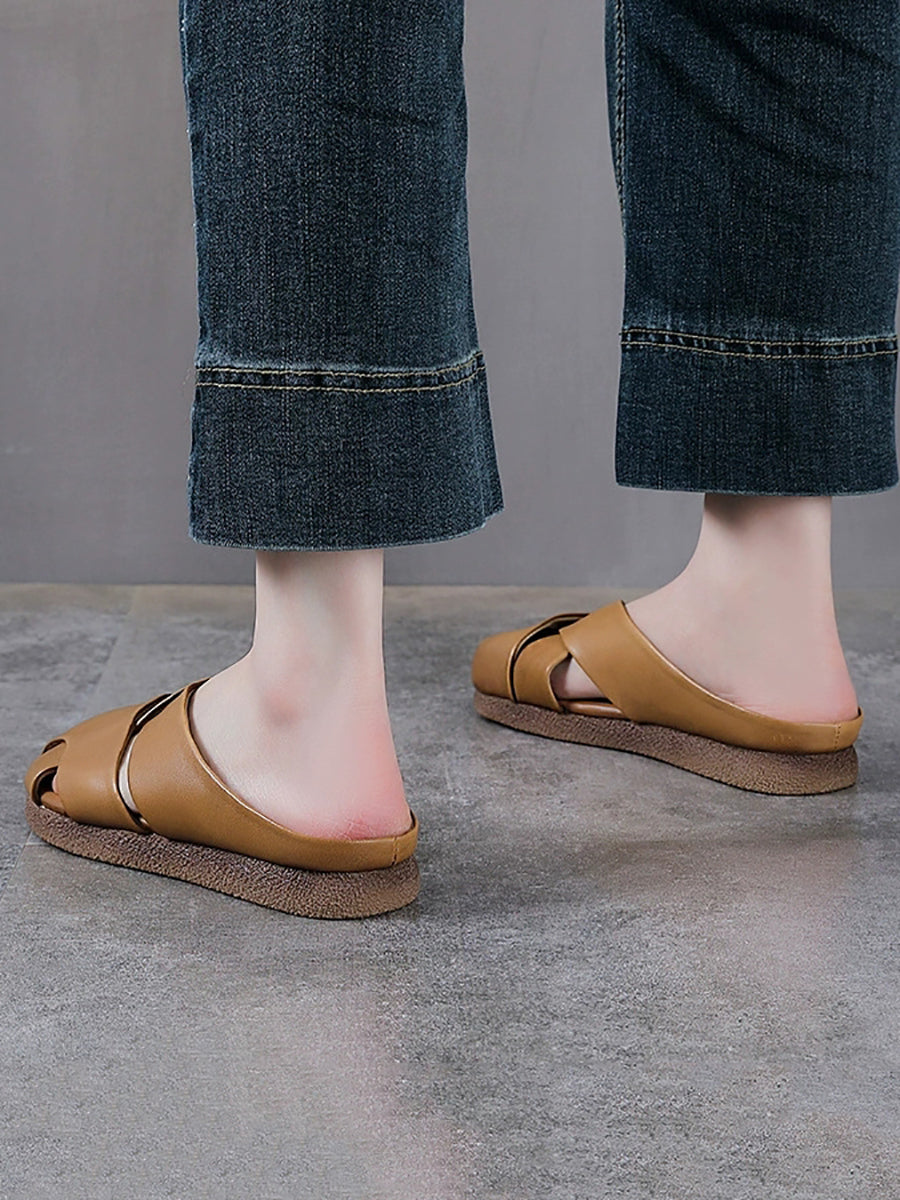 شباشب نسائية صيفية عتيقة من الجلد الطبيعي المنسوج