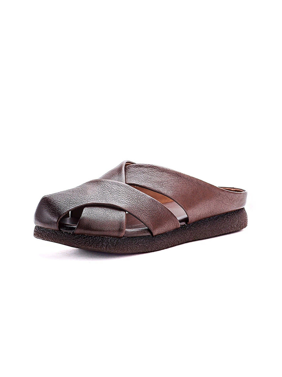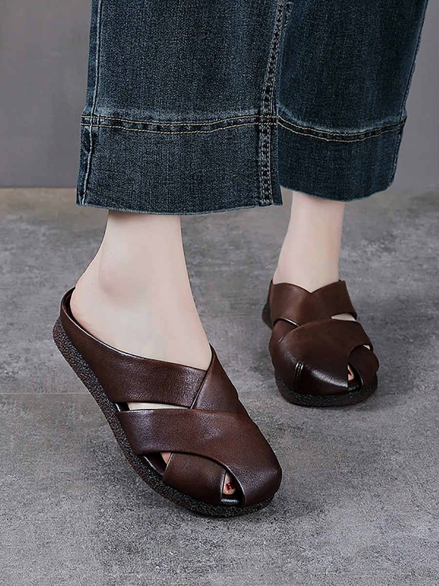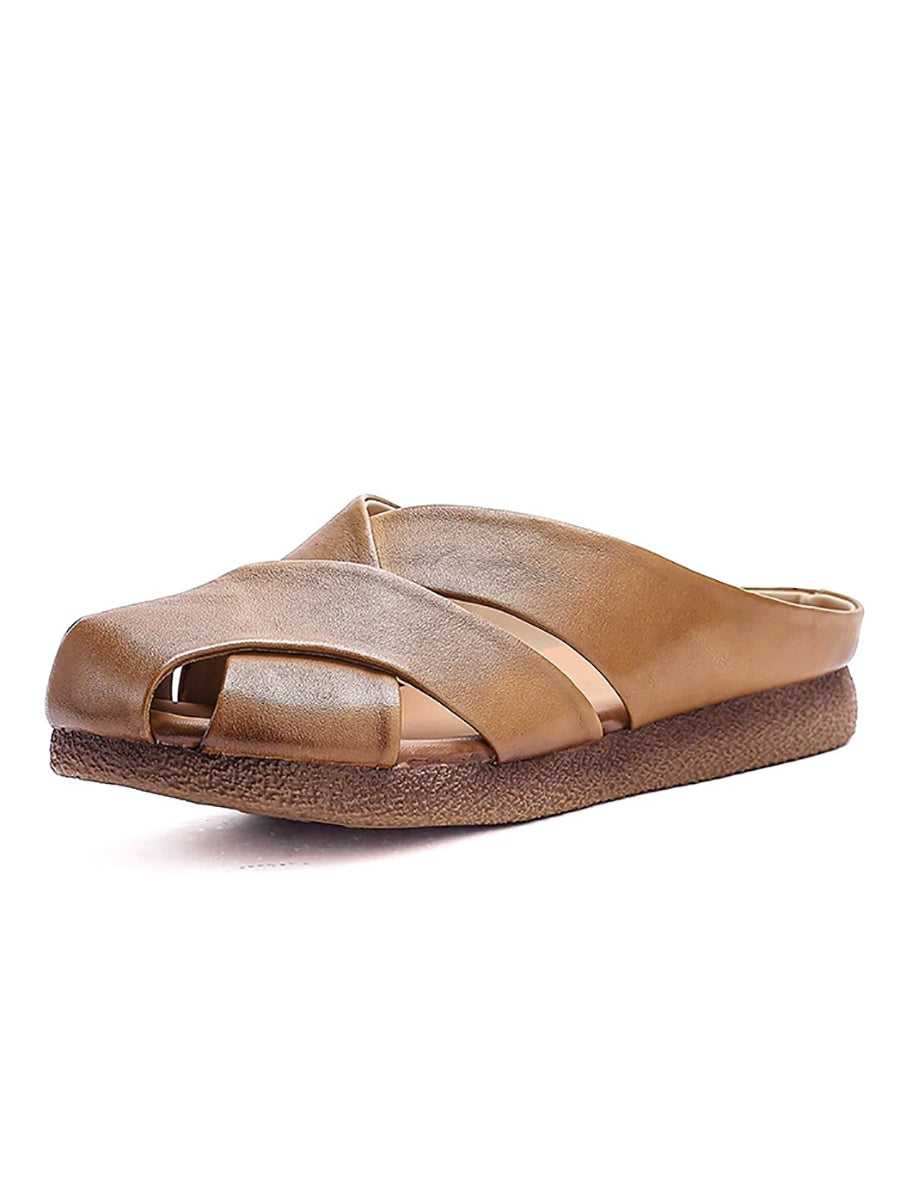 شباشب نسائية صيفية عتيقة من الجلد الطبيعي المنسوج