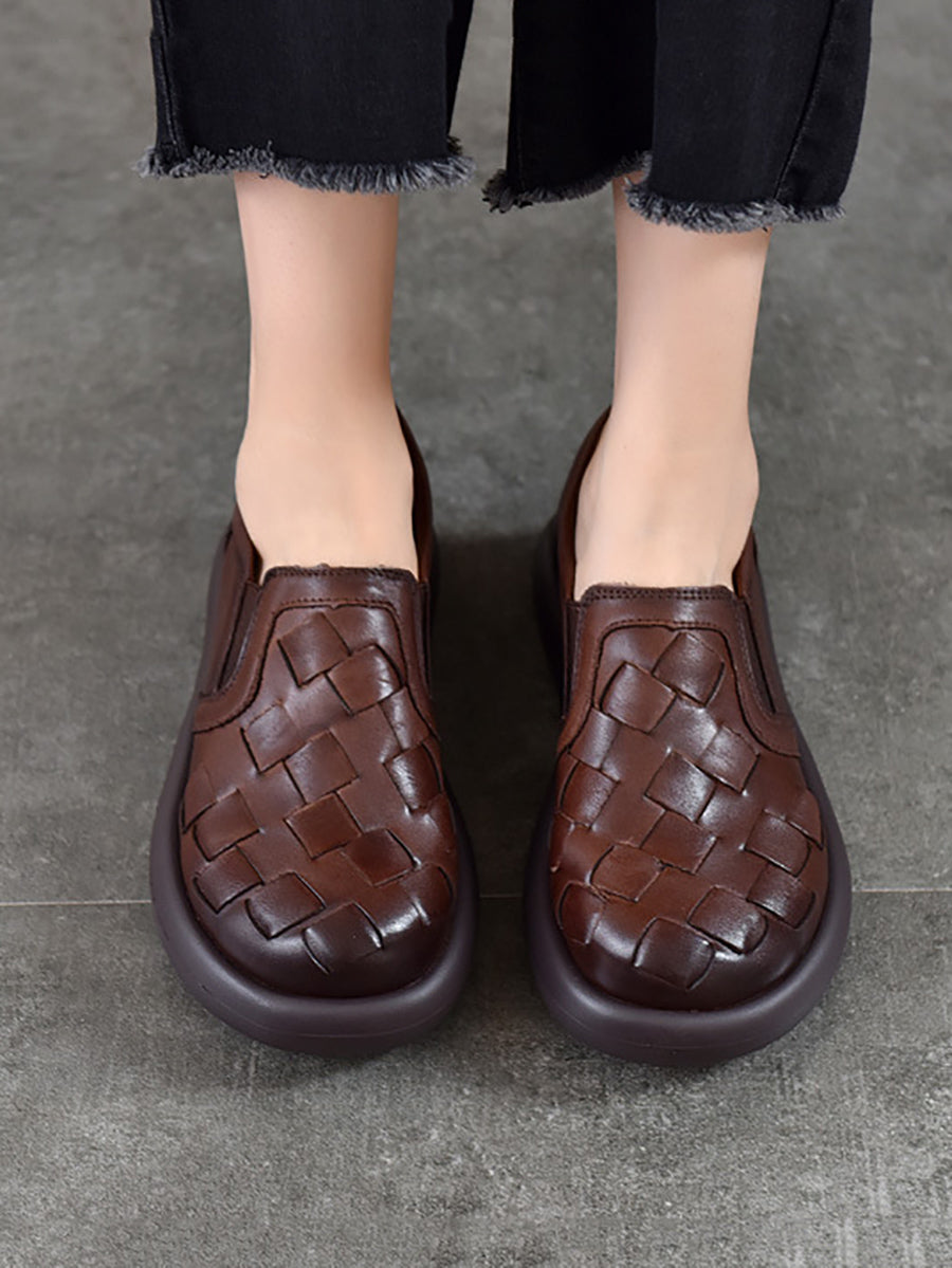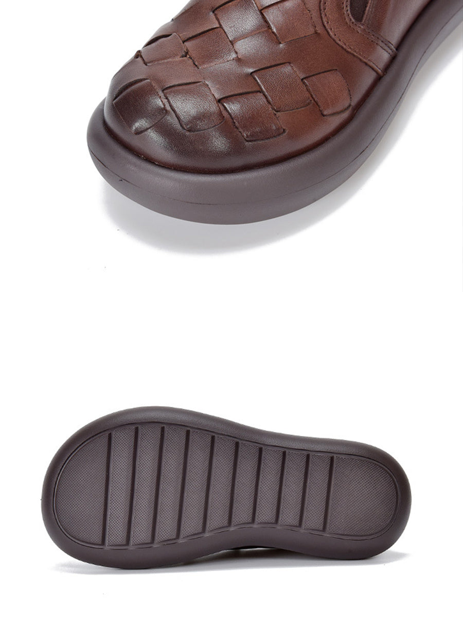 أحذية نسائية صيفية مسطحة من الجلد المنسوج بتصميم كلاسيكي