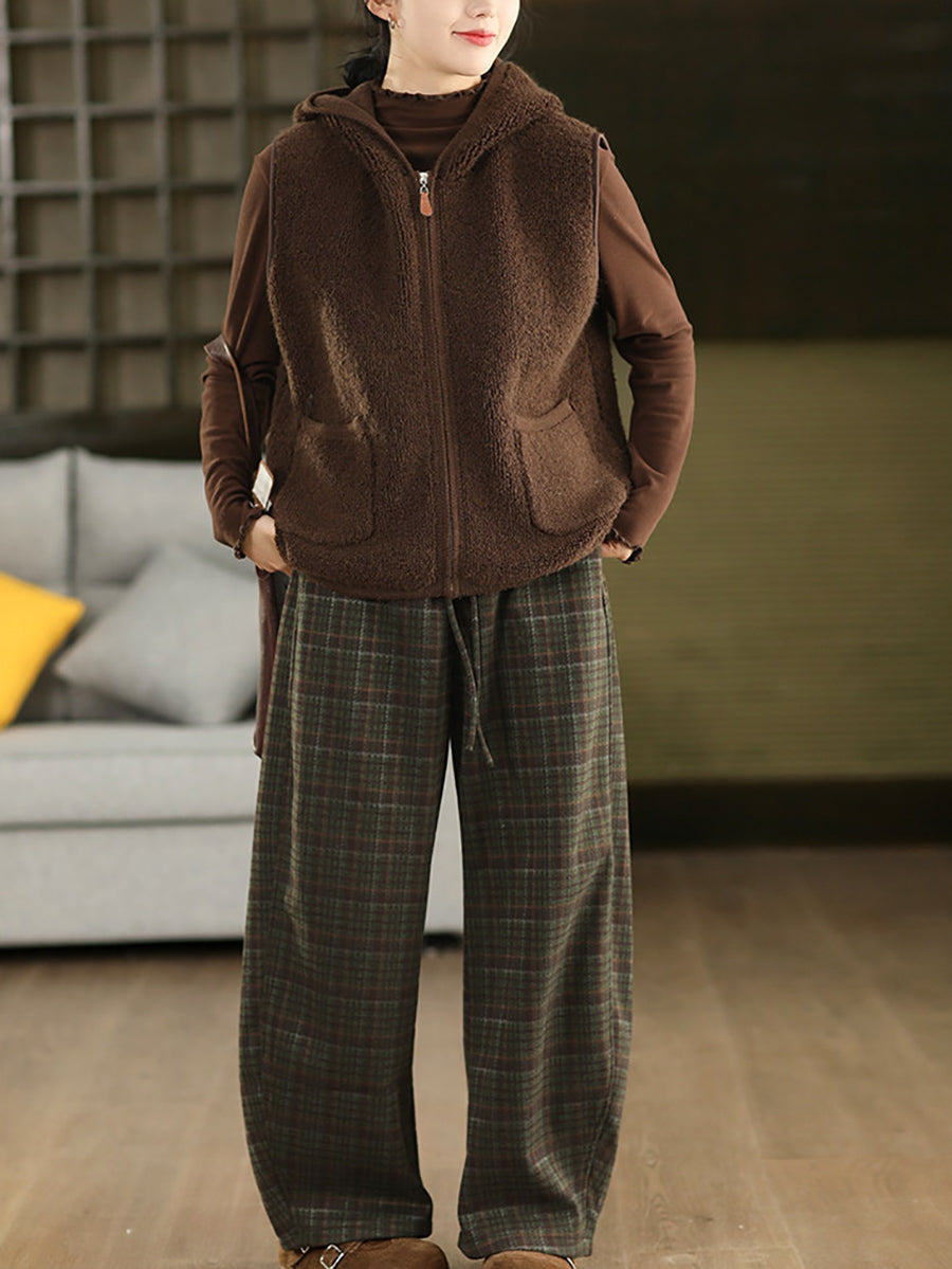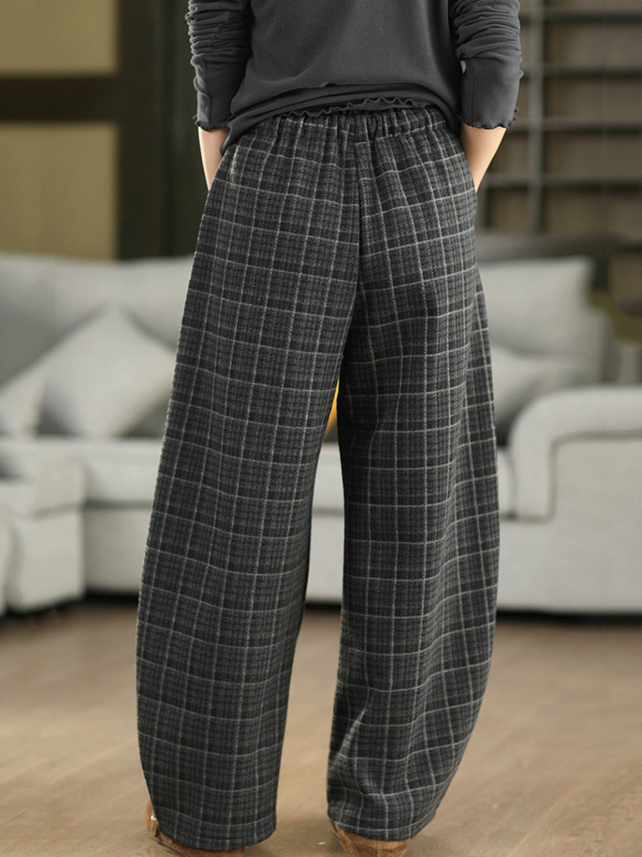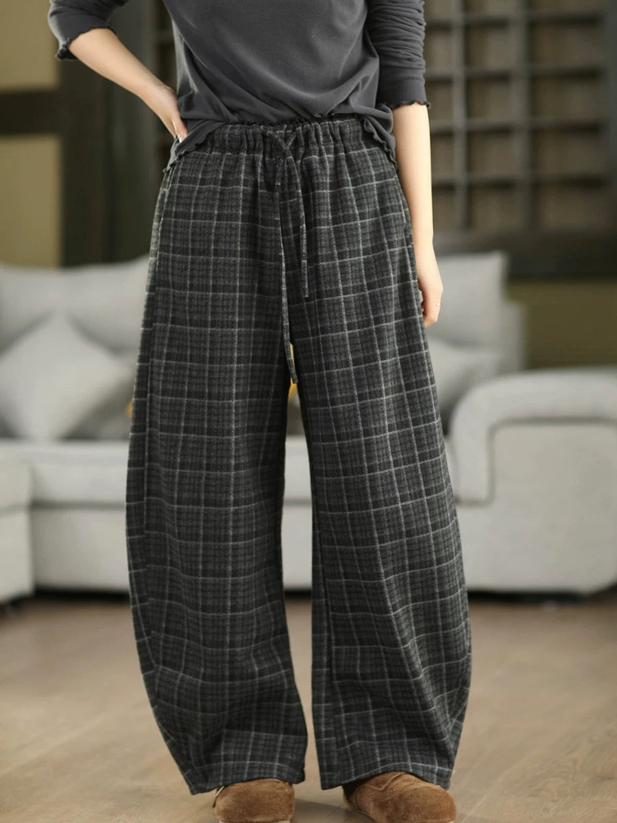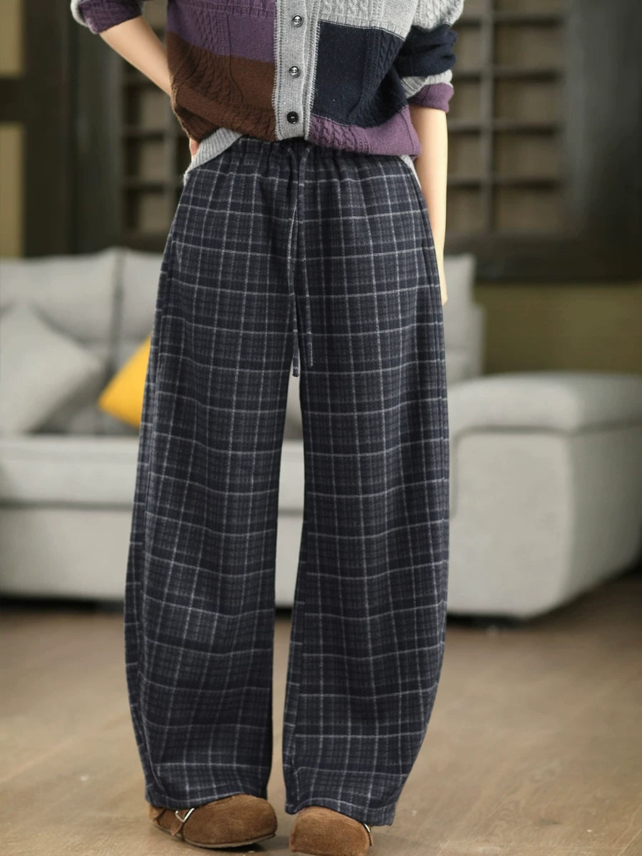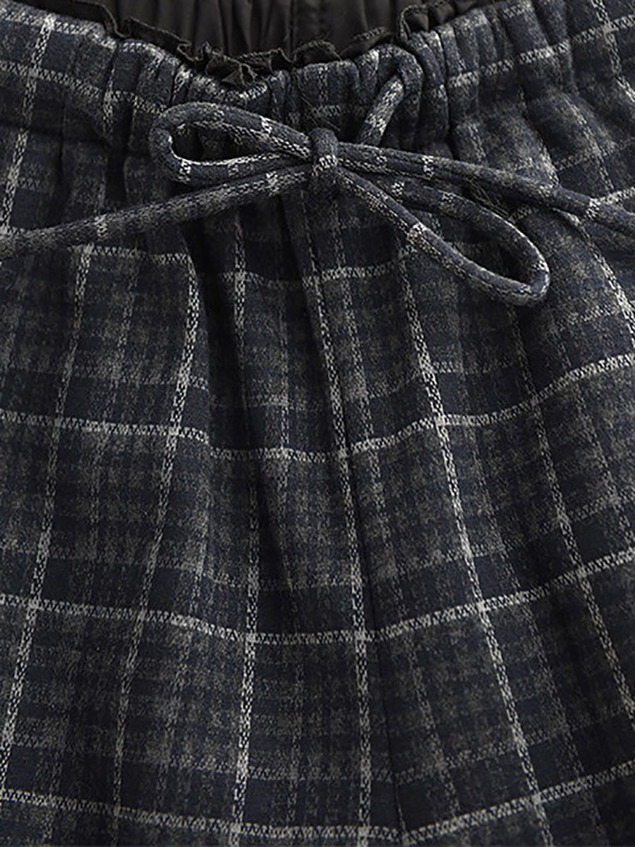 بنطلون نسائي شتوي أنيق بنقشة مربعات مبطن بالفرو