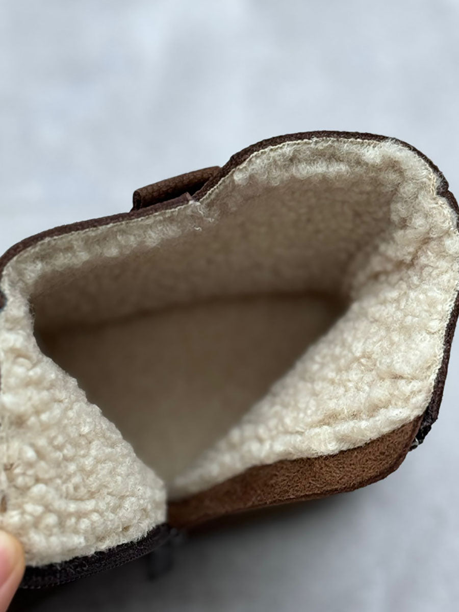 حذاء نسائي شتوي دافئ مبطن بالصوف من الجلد الطبيعي