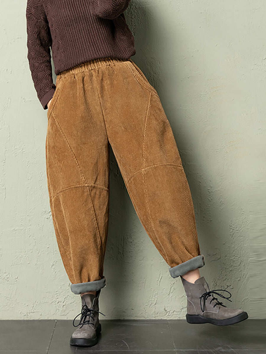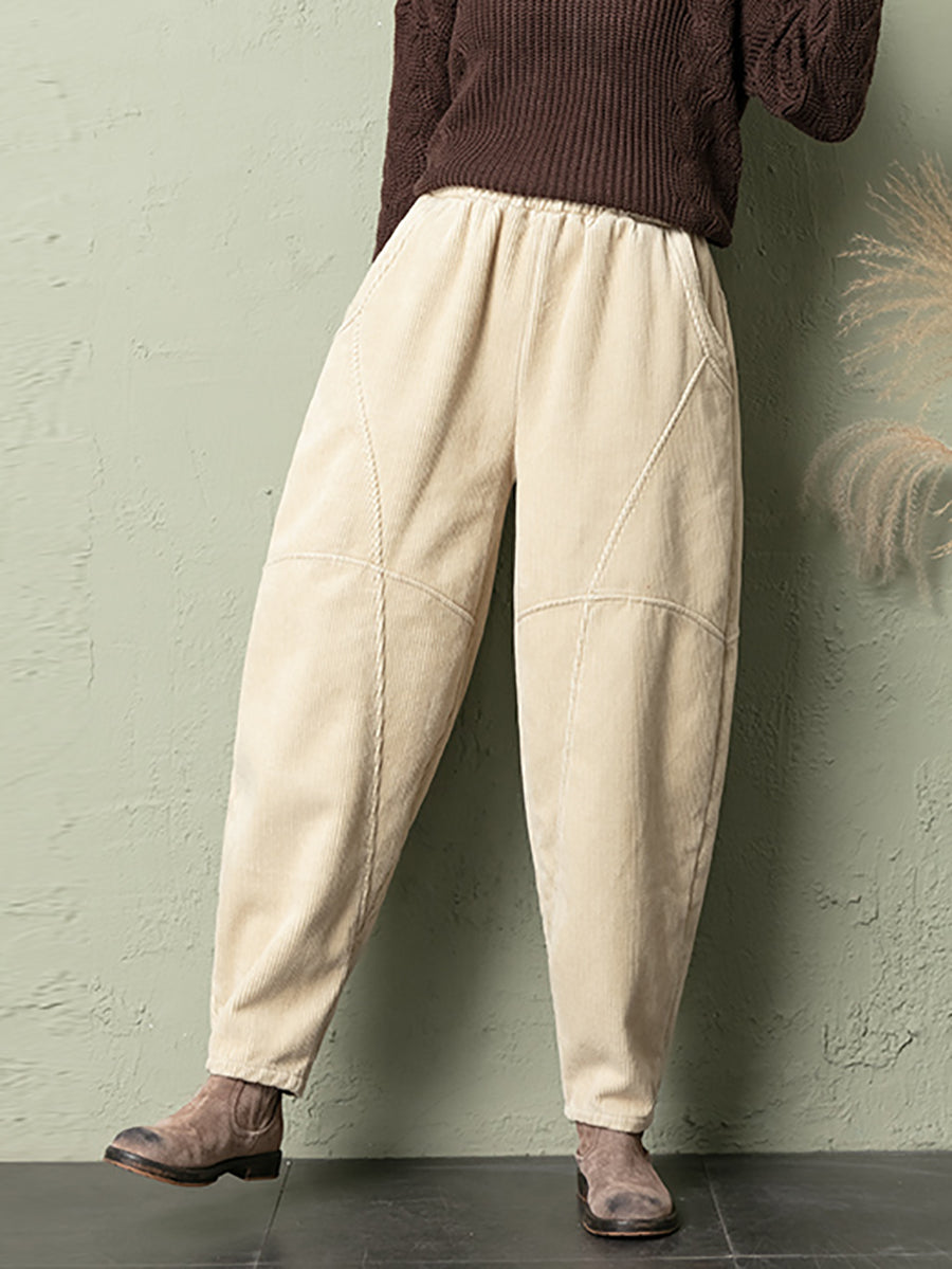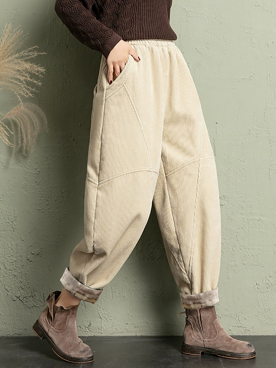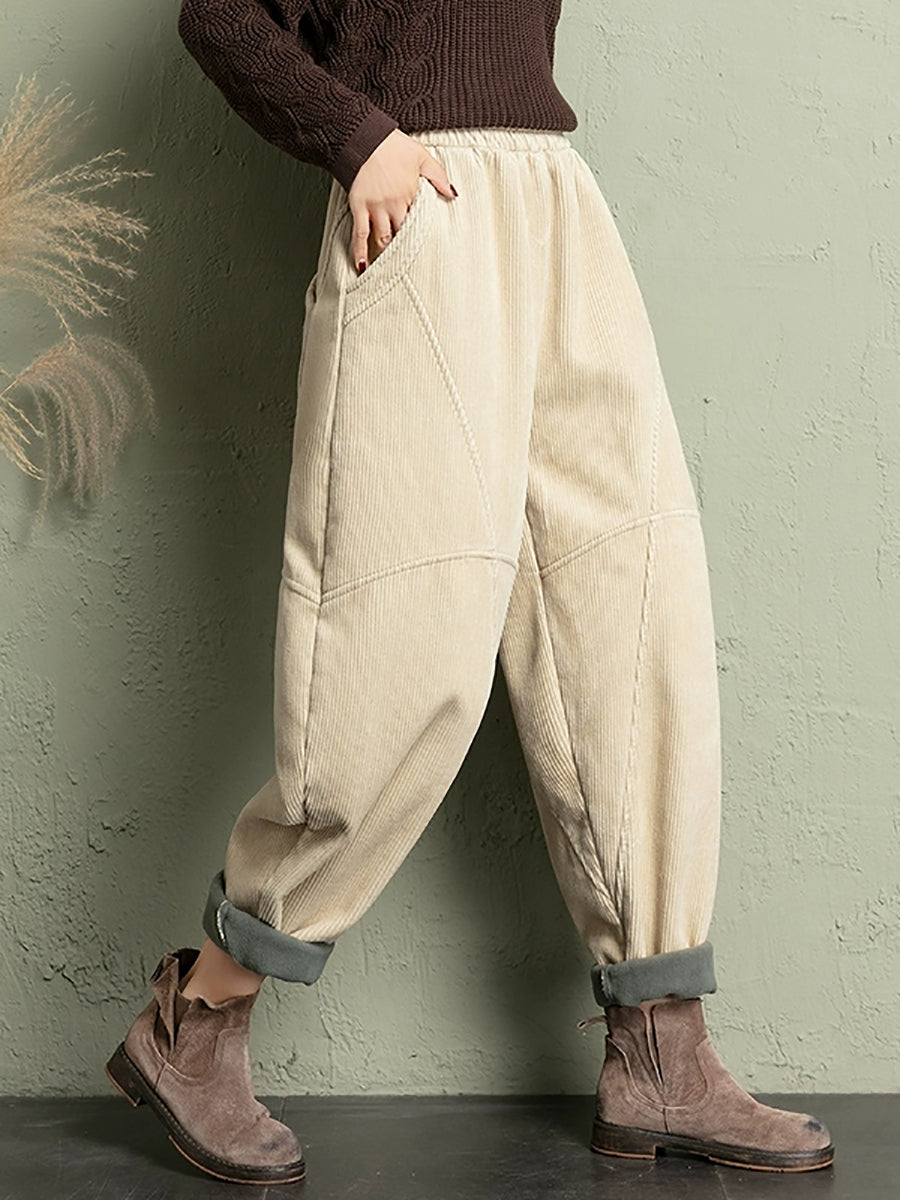 بنطلون حريمي شتوي كاجوال من قماش مخملي بلون نقي