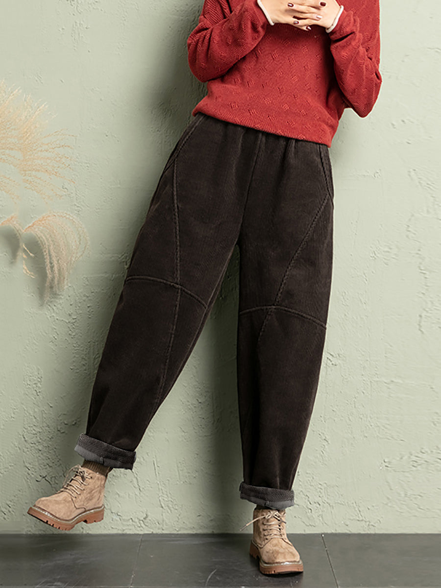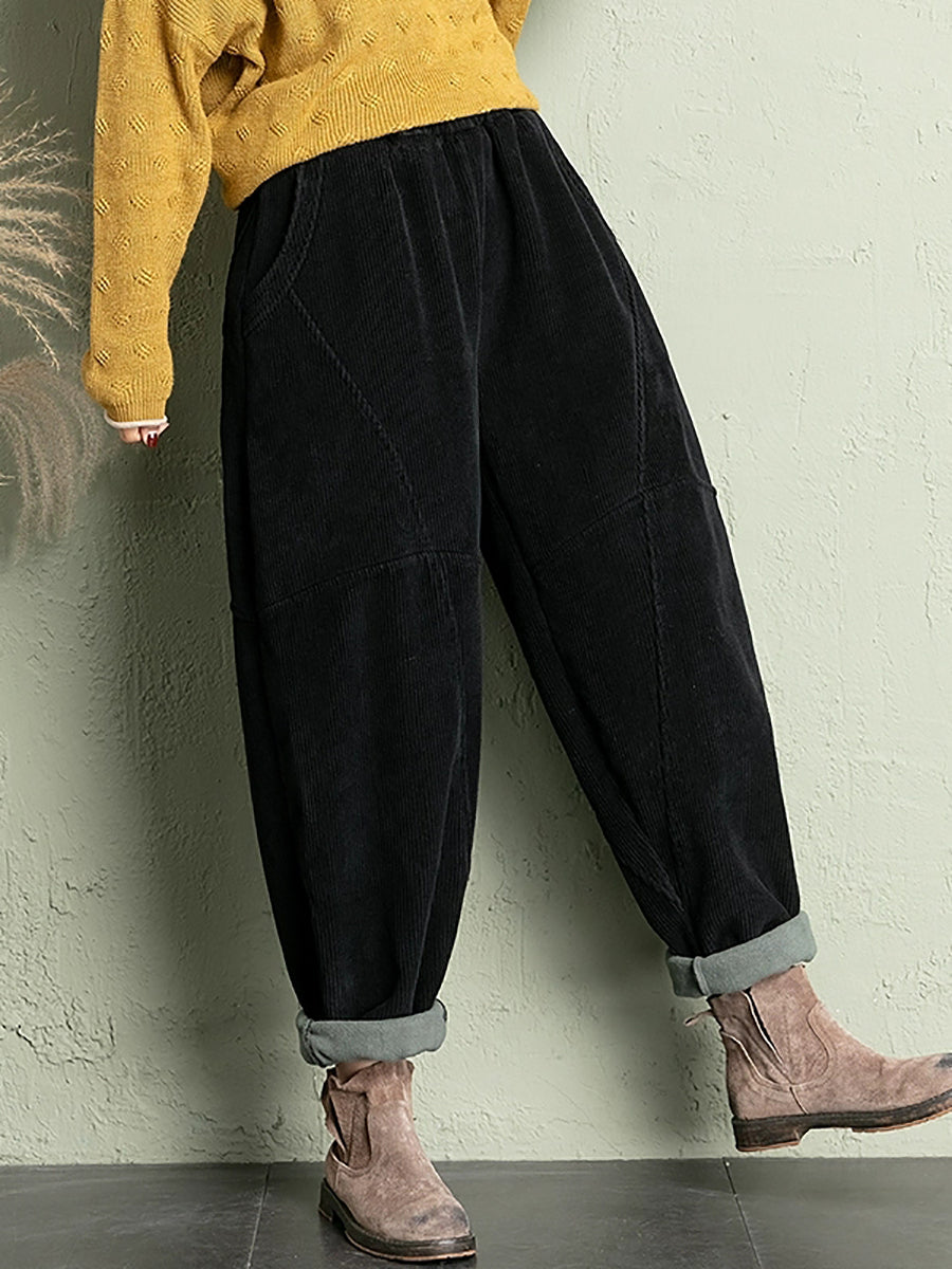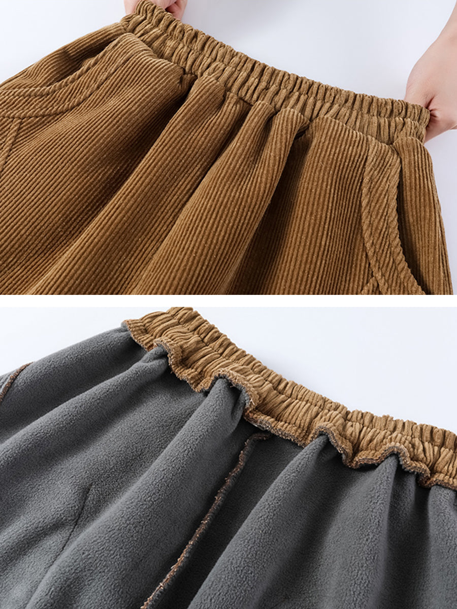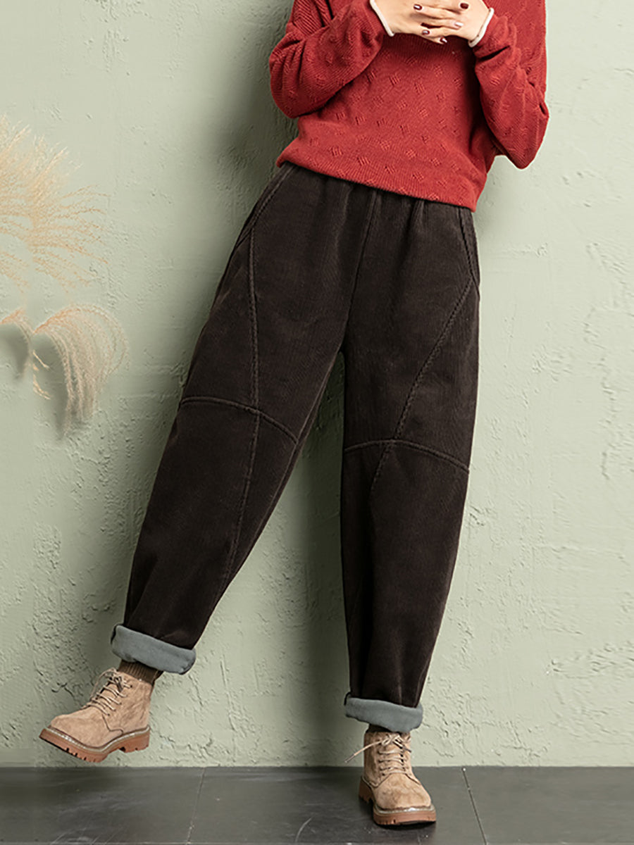 بنطلون حريمي شتوي كاجوال من قماش مخملي بلون نقي